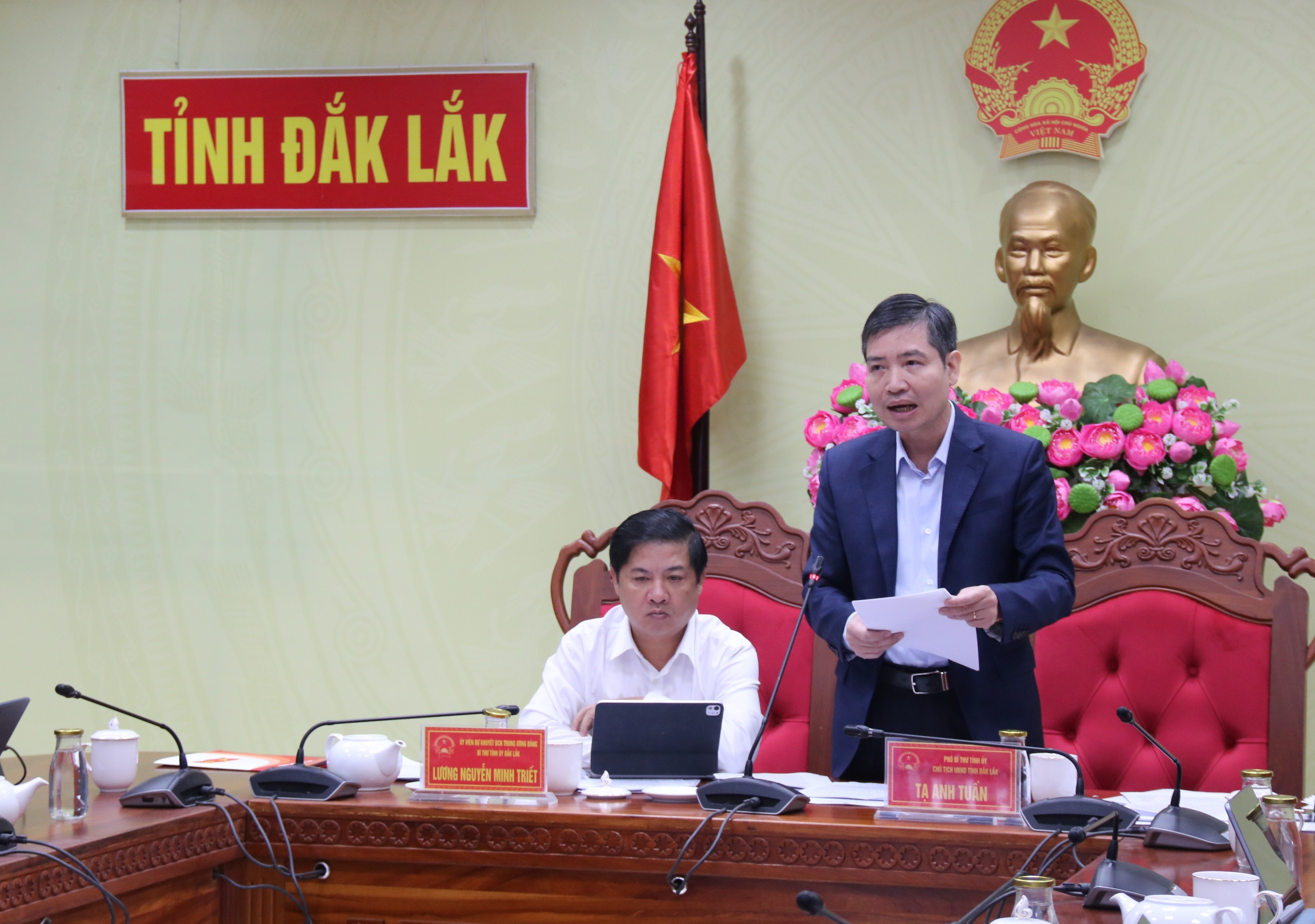 Đồng chí Tạ Anh Tuấn, Phó Bí thư Tỉnh ủy, Chủ tịch UBND tỉnh Đắk Lắk biểu tại Hội nghị.