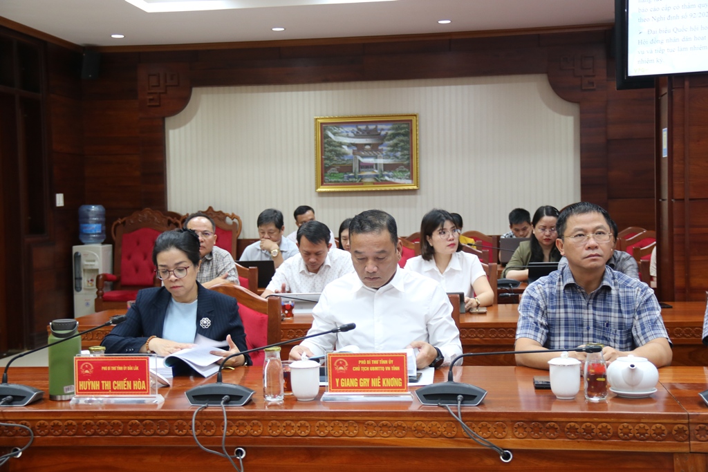 Tham dự Hội nghị tại điểm cầu tỉnh Đắk Lắk có các đồng chí: Lương Nguyễn Minh Triết, Ủy viên dự khuyết Ban Chấp hành Trung ương Đảng, Bí thư Tỉnh ủy; Huỳnh Thị Chiến Hòa, Phó Bí thư Tỉnh ủy; Y Giang Gry Niê Knơng, Phó Bí thư Tỉnh ủy, Chủ tịch Ủy ban MTTQ Việt Nam tỉnh; Trần Trung Hiển, Ủy viên BTV Tỉnh ủy, Chủ nhiệm Ủy ban Kiểm tra Tỉnh ủy; Trương Công Thái, Phó Chủ tịch UBND tỉnh; Thành viên Ban Chỉ đạo Bầu cử tỉnh; đại diện lãnh đạo các sở, ngành, địa phương của tỉnh.