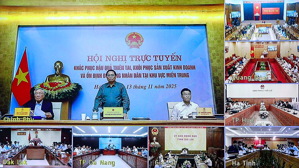 Chiều 13/11, Thủ tướng Chính phủ Phạm Minh Chính chủ trì Hội nghị trực tuyến về công tác khắc phục hậu quả của thiên tai và khôi phục sản xuất kinh doanh tại khu vực miền Trung. Dự Hội nghị tại điểm cầu Chính phủ còn có các đồng chí Phó Thủ tướng Chính phủ; lãnh đạo các bộ, ngành trung ương.