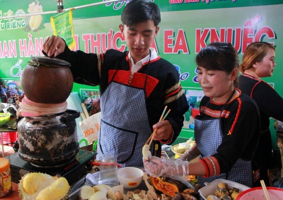 Thông qua sự sáng tạo, người dân địa phương đã tạo ra nhiều món ăn bắt mắt, hấp dẫn như các món mặn: xôi sầu riêng, đuôi bò hầm sầu riêng, gỏi gà, gà nướng sốt sầu riêng, chả ram hải sản sầu riêng, canh gà hầm sầu riêng; món tráng miệng gồm: sầu riêng nướng, bánh tằm sầu riêng, rau câu sầu riêng, chè thái, mochi sầu riêng, bông lan cuộn sầu riêng, vỏ sầu riêng chiên giòn, bánh cam nhân sầu riêng; thức uống gồm: sinh tố sầu riêng bơ, trà sữa sầu riêng, sữa hạt sầu riêng, nước mía sầu riêng, cà phê sầu riêng… Các món ăn đều được chế biến đảm bảo đúng thời gian quy định và đáp ứng yêu cầu về vệ sinh an toàn thực phẩm.