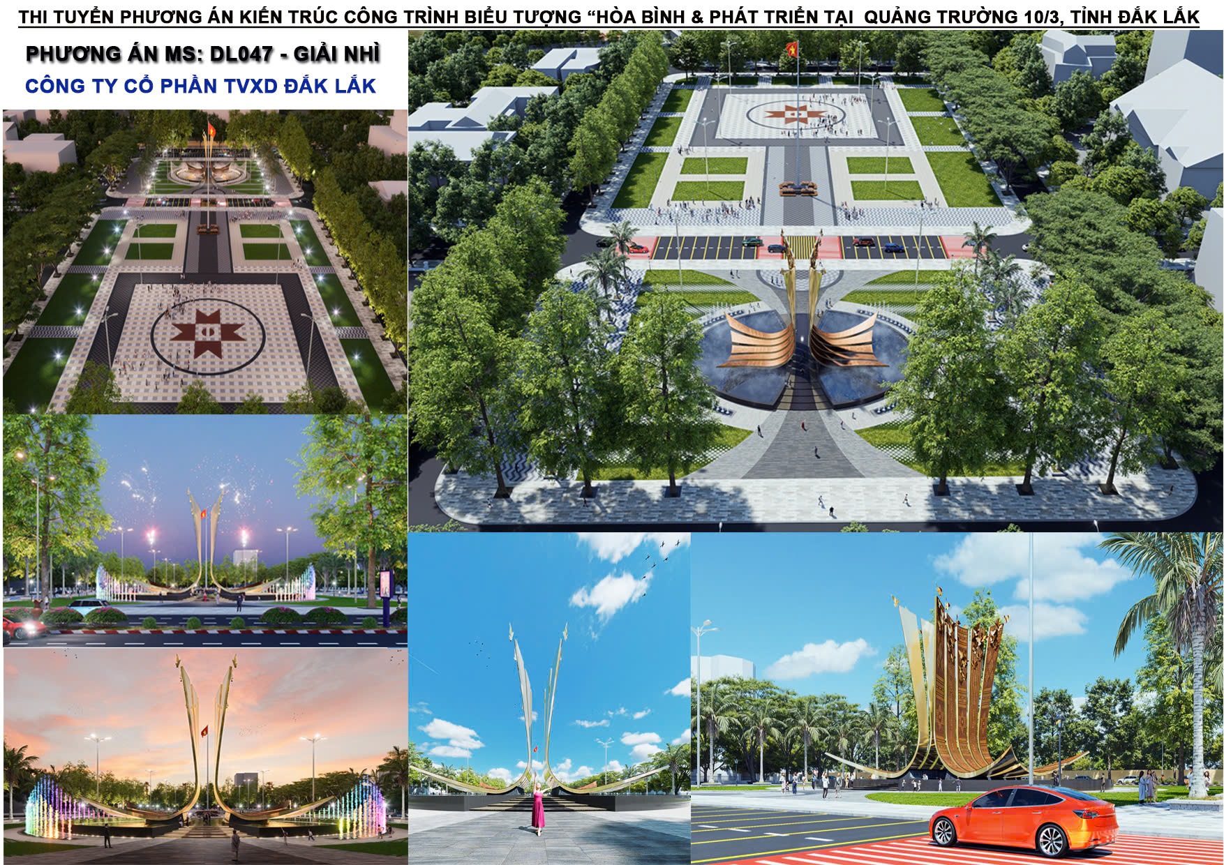 Ngày 9/4, Ban Quản lý dự án đầu tư xây dựng các công trình Dân dụng và Công nghiệp tỉnh Đắk Lắk đã chính thức thông báo kết quả đánh giá, xếp hạng thi tuyển phương án kiến trúc công trình mang tính biểu tượng “Hòa bình và phát triển”. Cuộc thi thu hút 08 phương án dự thi từ các đơn vị chuyên môn tham gia.