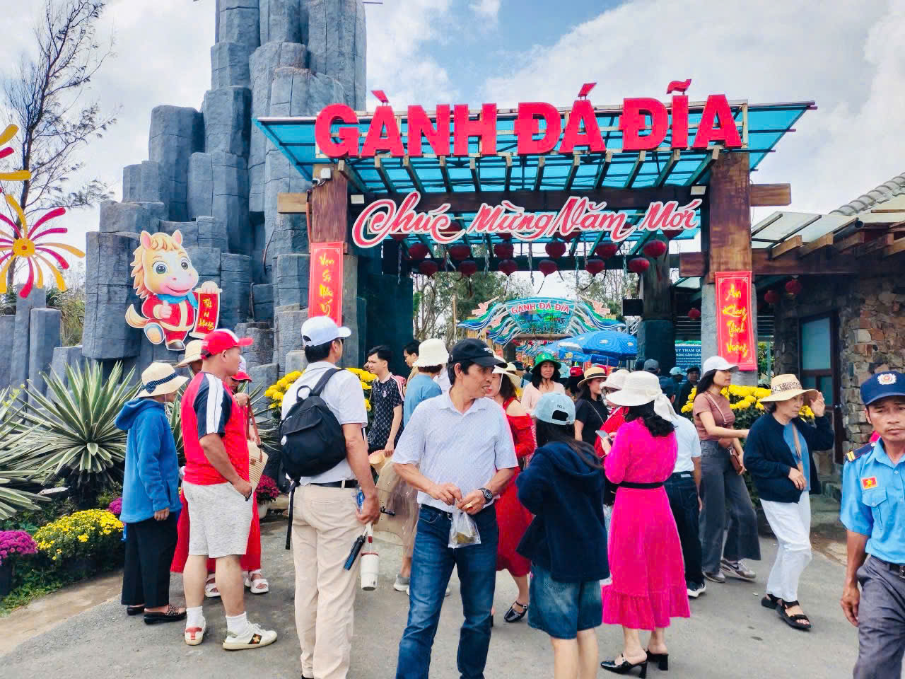 Đông đảo du khách tham quan Di tích Quốc gia đặc biệt danh lam thắng cảnh Gành Đá Đĩa.