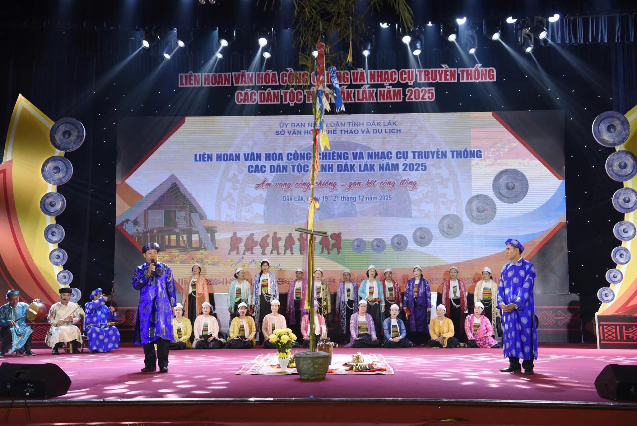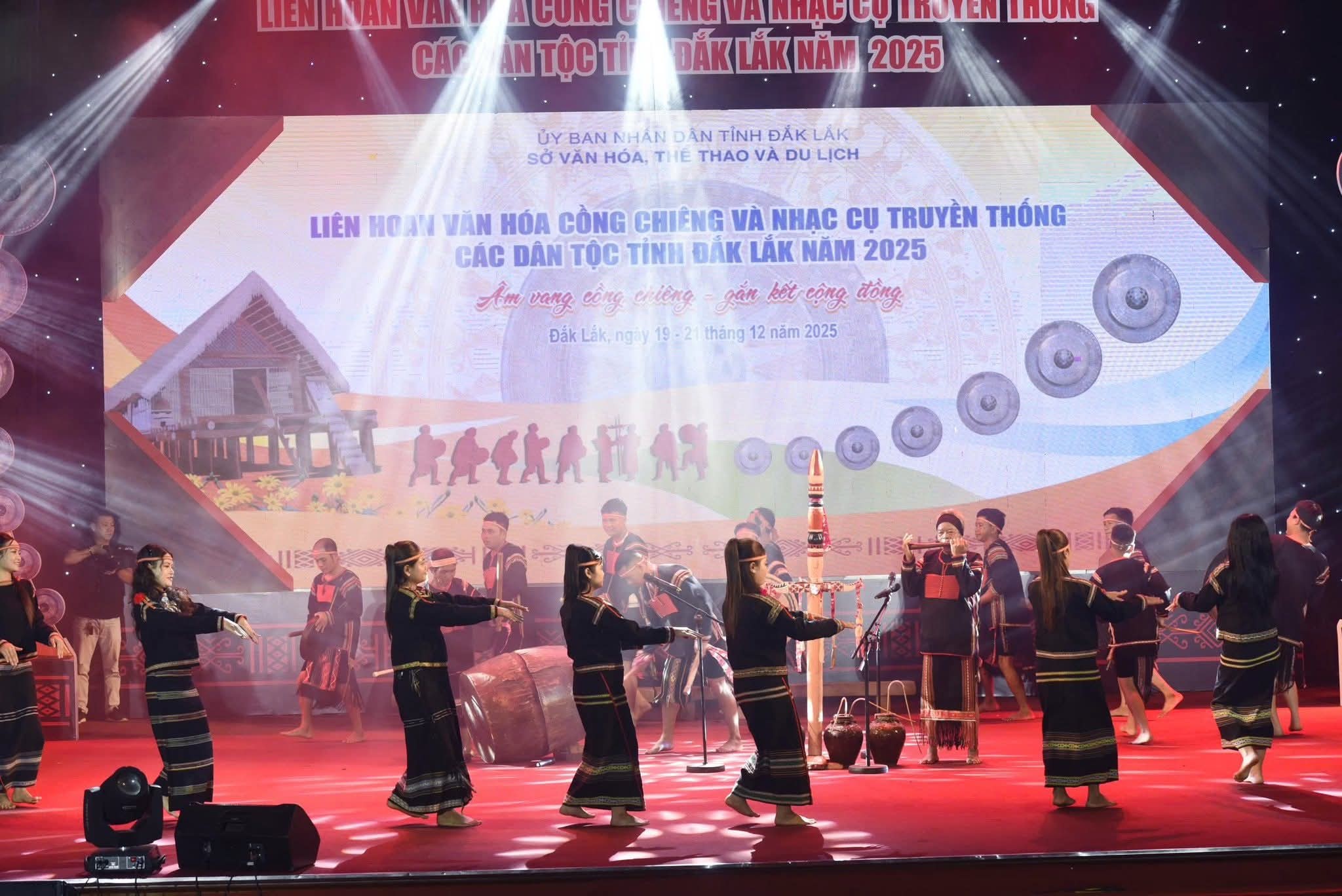Liên hoan diễn ra trong 3 ngày, từ 19 đến 21/12, với chủ đề “Âm vang cồng chiêng – gắn kết cộng đồng”, các đoàn nghệ nhân tham gia trình diễn cồng chiêng, nhạc cụ truyền thống, tái hiện không gian sinh hoạt văn hóa cộng đồng gắn với lễ hội, phong tục tập quán đặc trưng của từng dân tộc. Nhiều tiết mục được dàn dựng công phu, thể hiện sự gắn kết hài hòa giữa âm nhạc, nghi lễ và đời sống cộng đồng.