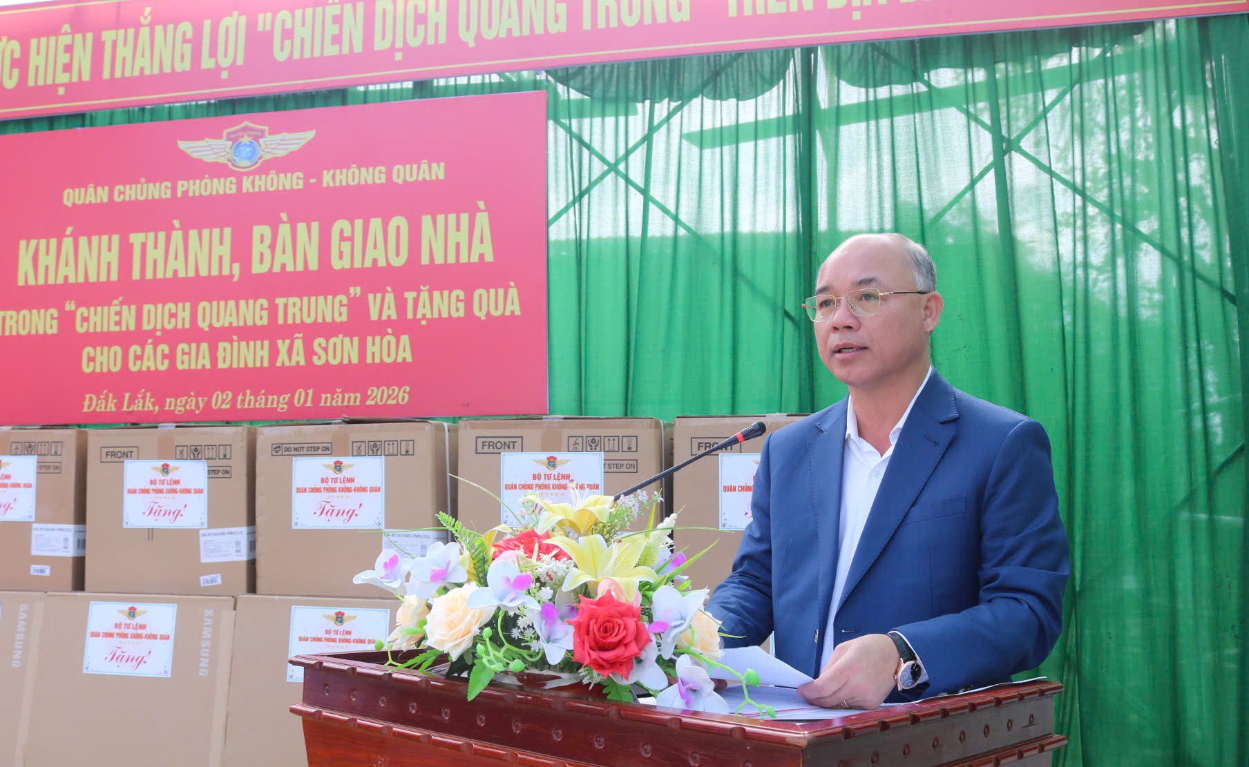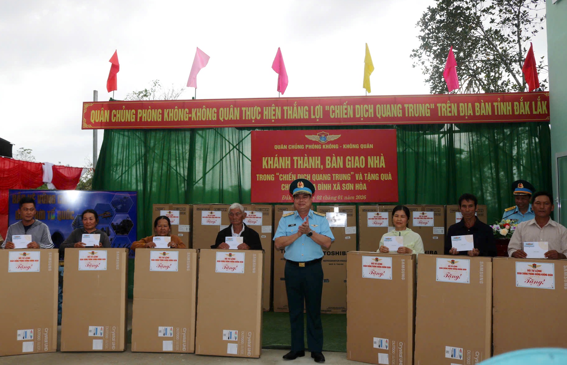 Sáng 2/1, tại xã Sơn Hòa, Đảng ủy, Bộ Tư lệnh Quân chủng Phòng không - Không quân phối hợp với cấp ủy, chính quyền địa phương tổ chức lễ khánh thành, bàn giao 7 căn nhà trong “Chiến dịch Quang Trung” và trao quà cho các gia đình trên địa bàn xã.