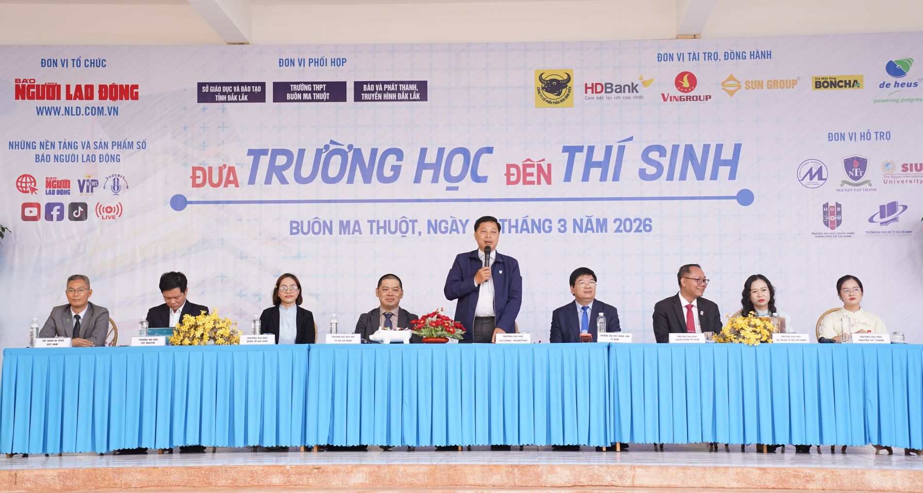 Sáng 28/3, tại Trường THPT Buôn Ma Thuột, Báo Người Lao động tổ chức chương trình tư vấn mùa thi “Đưa trường học đến thí sinh”.