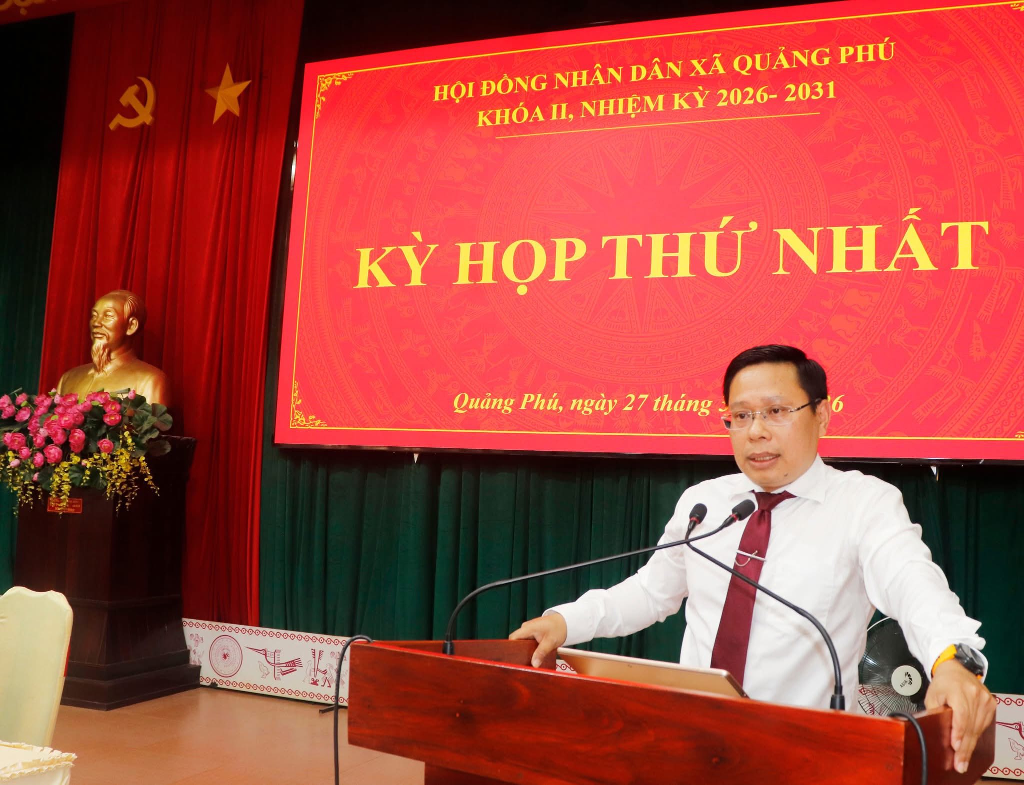Chiều 27/3, HĐND xã Quảng Phú khóa II, nhiệm kỳ 2026 - 2031 đã tổ chức Kỳ họp thứ nhất nhằm kiện toàn các chức danh chủ chốt của bộ máy chính quyền địa phương sau cuộc bầu cử đại biểu HĐND các cấp.