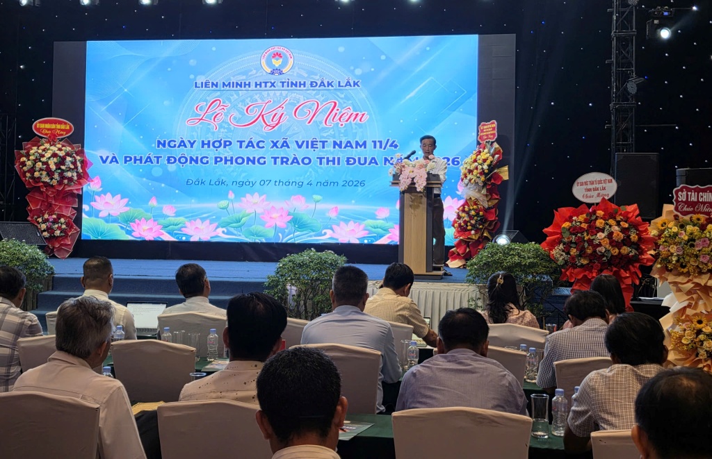 Phát biểu tại buổi lễ, đồng chí Y Giang Gry Niê Knơng, Phó Bí thư Tỉnh ủy, Chủ tịch Ủy ban MTTQ Việt Nam tỉnh nhấn mạnh: Khu vực kinh tế tập thể, nòng cốt là các hợp tác xã, đã và đang khẳng định vai trò quan trọng trong phát triển kinh tế - xã hội của tỉnh. Trong bối cảnh hội nhập sâu rộng và yêu cầu phát triển theo hướng xanh, bền vững, chuyển đổi số mạnh mẽ, khu vực kinh tế tập thể cần tiếp tục đổi mới toàn diện cả về tư duy và phương thức hoạt động. Đồng chí đề nghị UBND tỉnh tập trung cụ thể hóa và triển khai hiệu quả các chương trình, kế hoạch của Tỉnh ủy về phát triển kinh tế tập thể; tạo cơ chế, chính sách thuận lợi để hỗ trợ các HTX tiếp cận nguồn vốn, khoa học - công nghệ và thị trường.