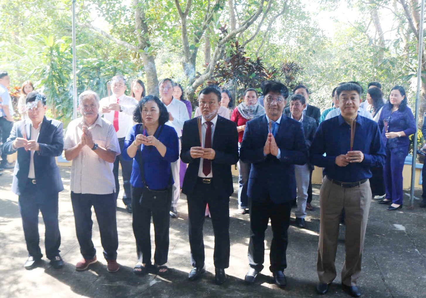 Lãnh đạo, nguyên lãnh đạo tỉnh cùng các đại biểu dâng dương tại Đập Đồng Cam.