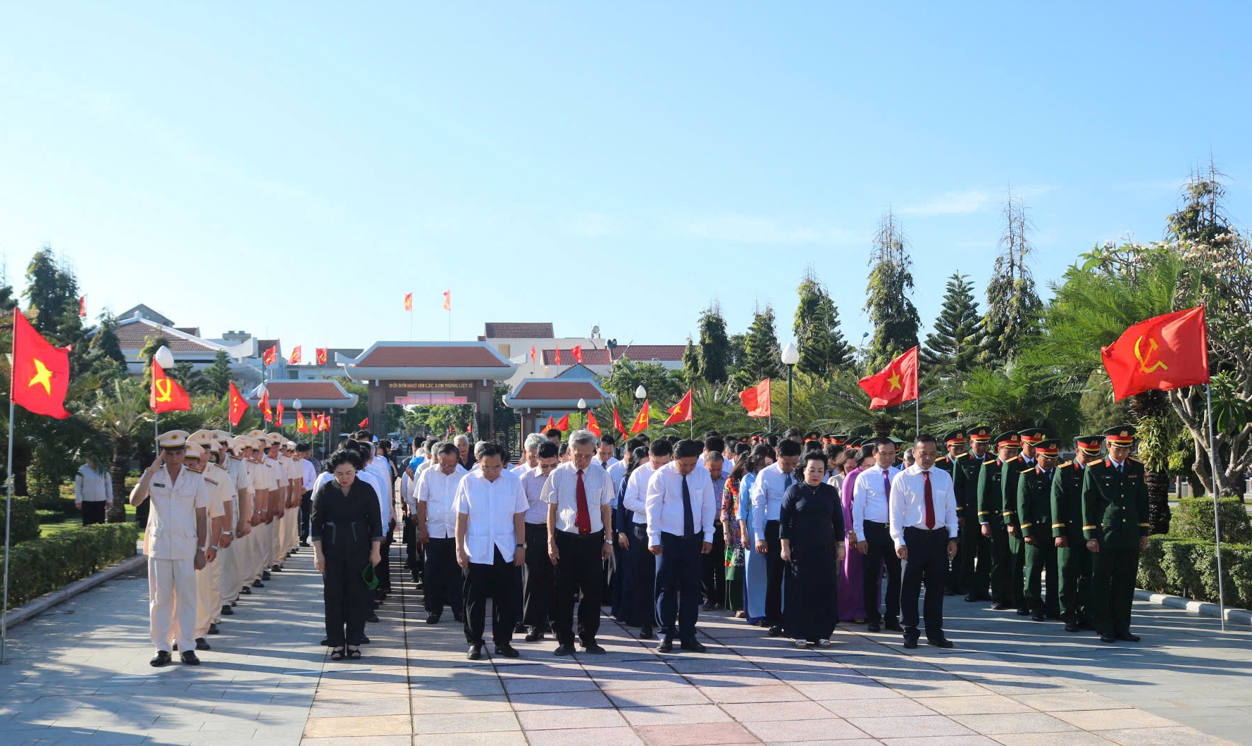 Đại biểu mặc niệm, tưởng nhớ công ơn của các bậc tiền nhân, các anh hùng đã hi sinh vì đất nước.