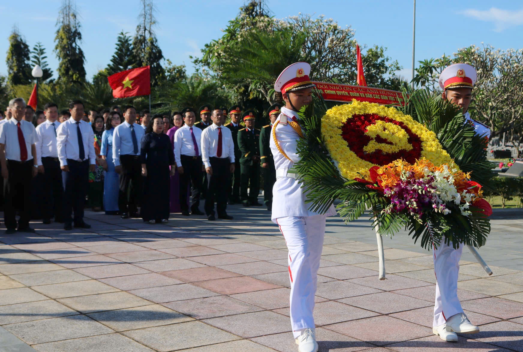 Các đại biểu dâng hoa tưởng niệm tại Nghĩa trang liệt sĩ tỉnh.