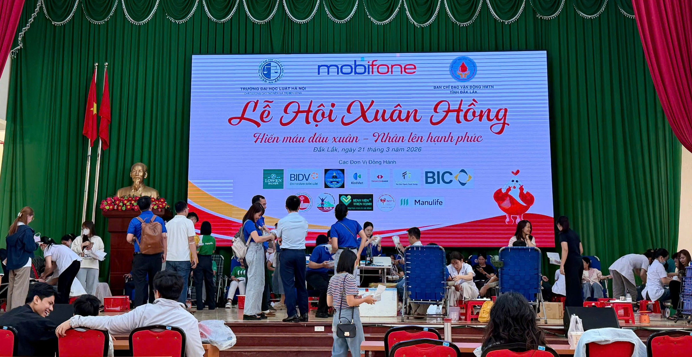 Sáng 21/3, Phân hiệu Trường Đại học Luật Hà Nội tại tỉnh Đắk Lắk phối hợp cùng các đơn vị liên quan tổ chức chương trình hiến máu tình nguyện với chủ đề “Lễ hội Xuân hồng 2026”.