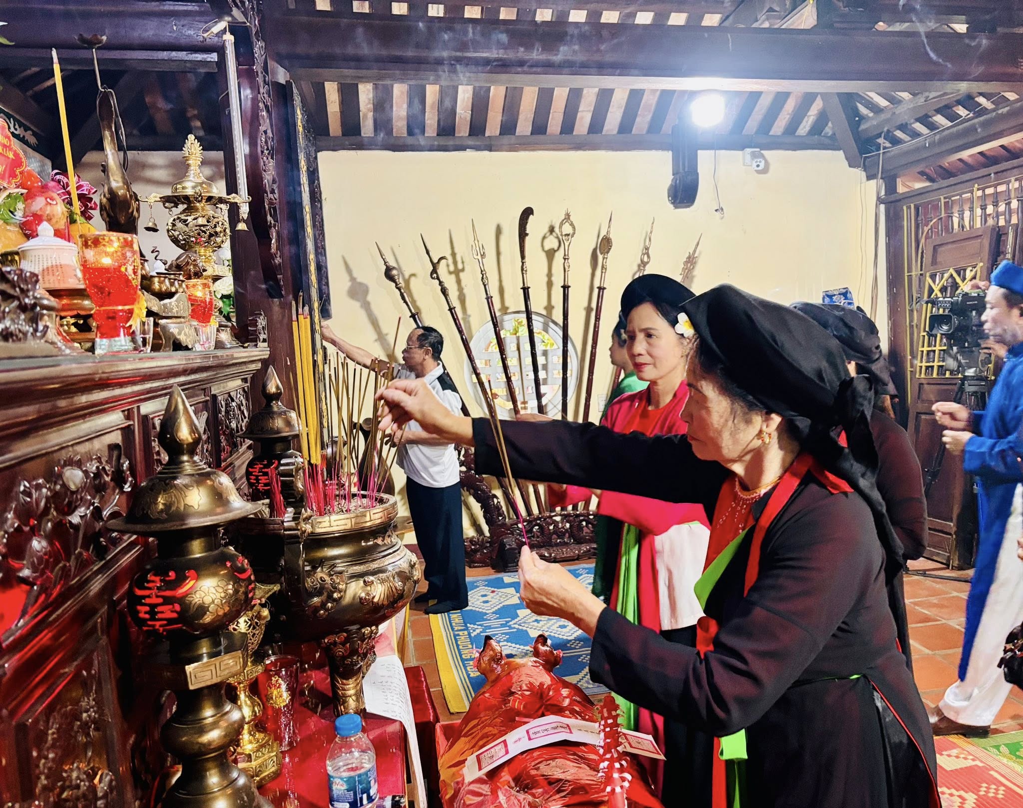 Đội tế Nam quan thực hiện theo nghi thức cổ truyền dâng lễ vật và hương án tưởng niệm các bậc tiền nhân