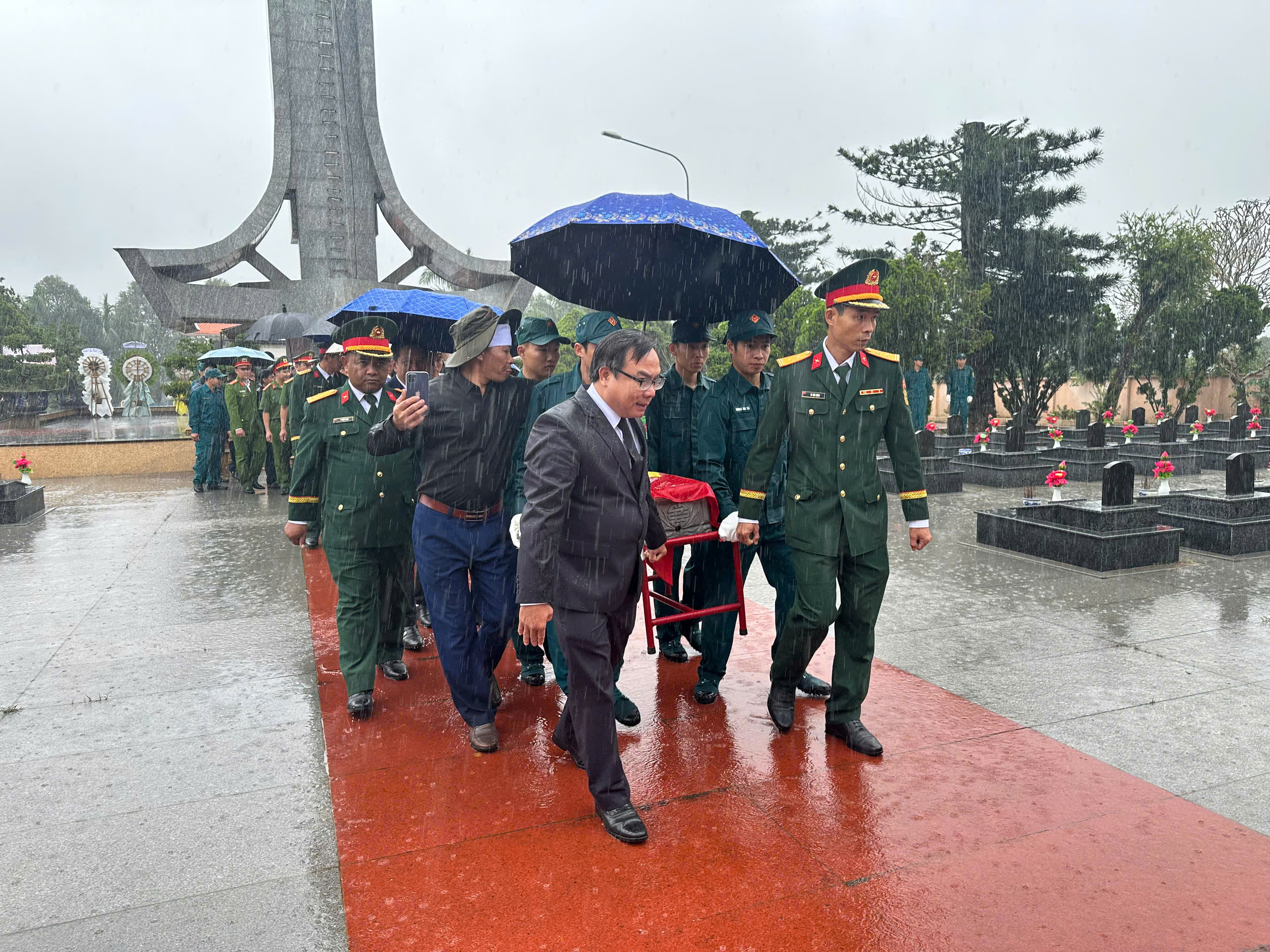 Các đại biểu tiễn đưa hài cốt liệt sĩ về nơi an nghỉ cuối cùng.