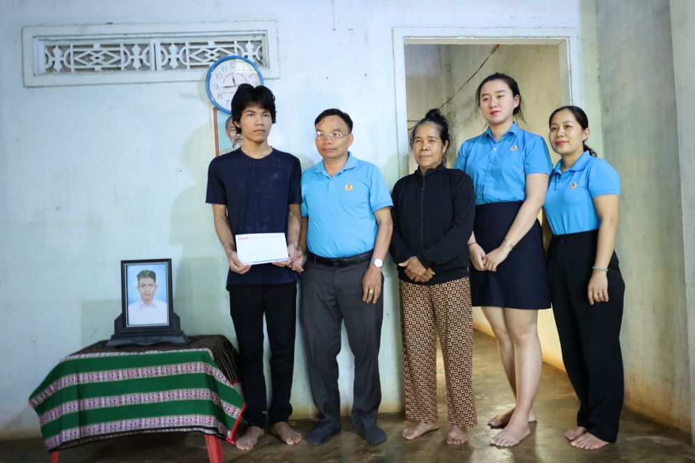 Chiều 3/10, Phó Chủ tịch LĐLĐ tỉnh Nguyễn Phú Lập, Quỹ Xã hội từ thiện Tấm lòng vàng của Báo Lao động đã tổ chức đoàn đến thăm hỏi, hỗ trợ gia đình đoàn viên Y Lữk Niê Hrah (trú tại Phường Ea Kao) là công nhân lao động của Công ty TNHH May mặc Able Joy Đắk Lắk bị tai nạn tử vong trên đường đi làm về.