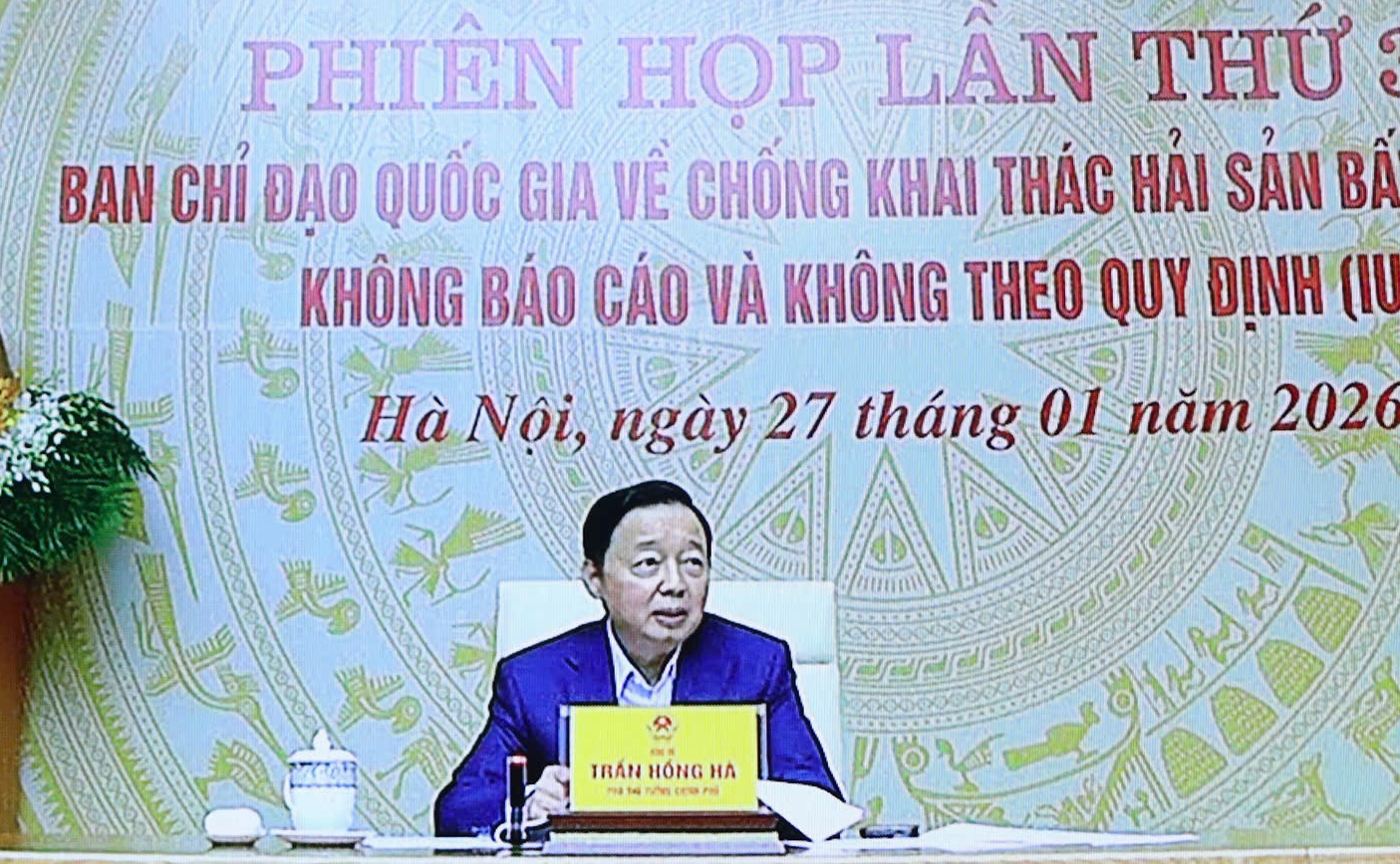 Chiều 27/1, tại Hà Nội, Phó Thủ tướng Chính phủ Trần Hồng Hà đã chủ trì Phiên họp lần thứ 30 của Ban Chỉ đạo Quốc gia về chống khai thác hải sản bất hợp pháp, không báo cáo và không theo quy định (IUU). Phiên họp được tổ chức trực tiếp tại Trụ sở Chính phủ và kết nối trực tuyến với 22 tỉnh, thành phố ven biển.