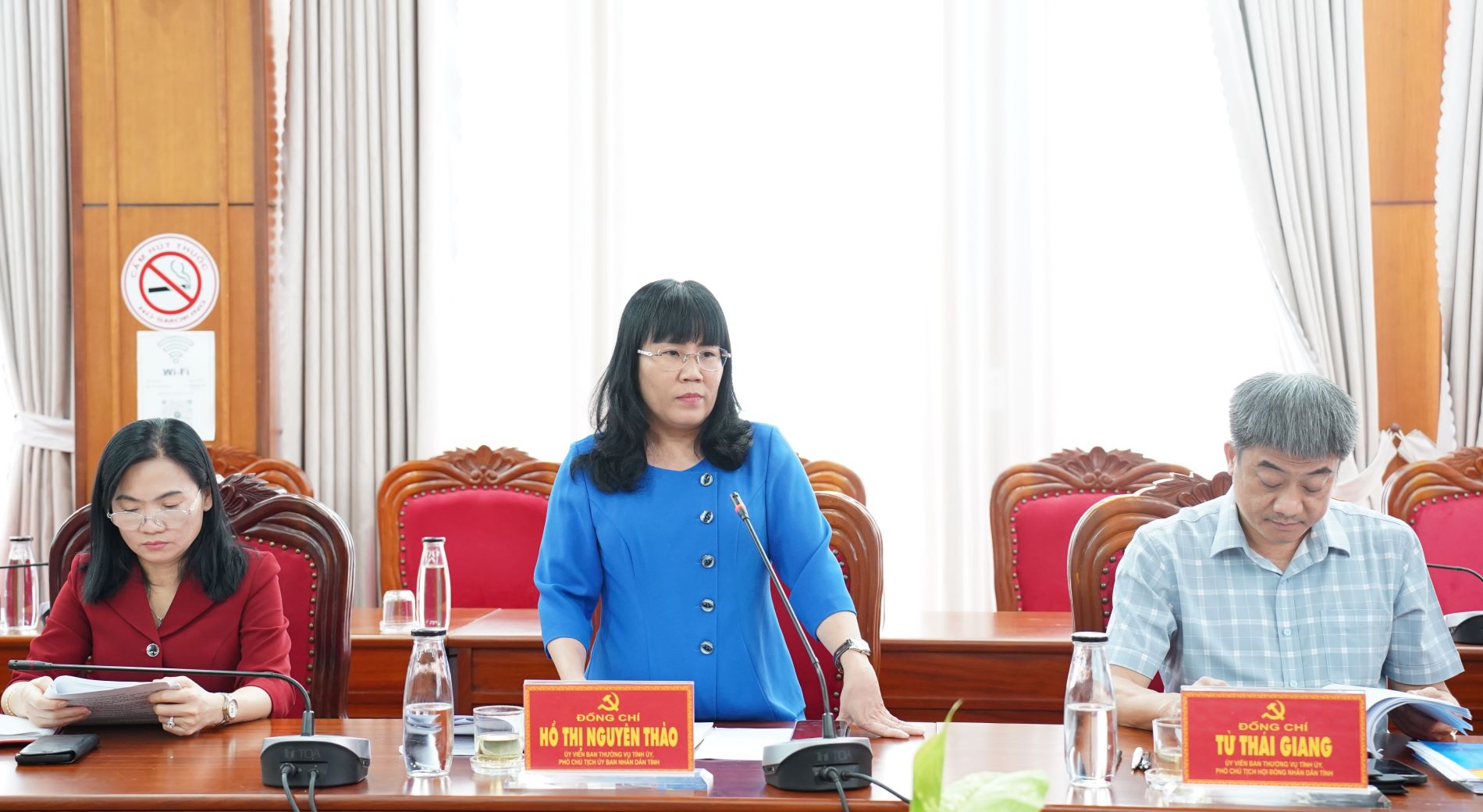 Ủy viên Ban Thường vụ Tỉnh ủy, Phó Chủ tịch UBND tỉnh Hồ Thị Nguyên Thảo phát biểu thảo luận tại phiên họp.