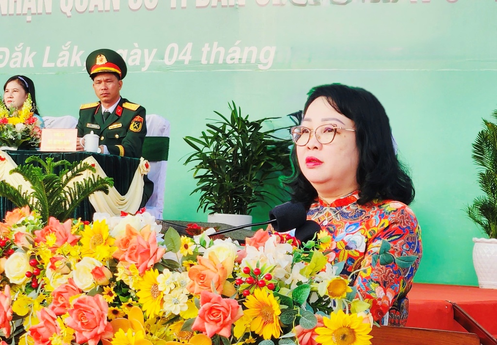 Phát biểu tại buổi lễ, đồng chí Cao Thị Hòa An nhấn mạnh, lễ giao nhận quân không chỉ là ngày hội của tuổi trẻ mà còn là ngày hội của toàn dân, thể hiện sâu sắc truyền thống yêu nước, tinh thần trách nhiệm và nghĩa vụ thiêng liêng của công dân đối với Tổ quốc. Đồng chí khẳng định, Đắk Lắk là vùng đất giàu truyền thống cách mạng, qua các thời kỳ luôn có nhiều thế hệ thanh niên hăng hái lên đường bảo vệ Tổ quốc, lập nên những thành tích đáng tự hào trong lực lượng vũ trang.