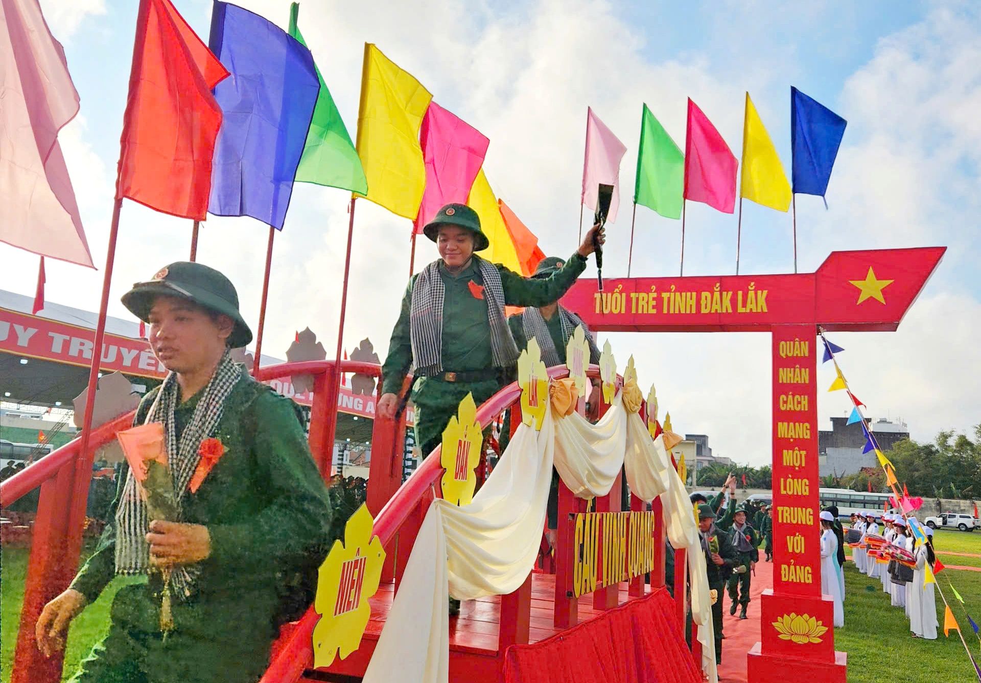Tân binh qua cầu Vinh quang, sẵn sàng lên đường nhập ngũ.