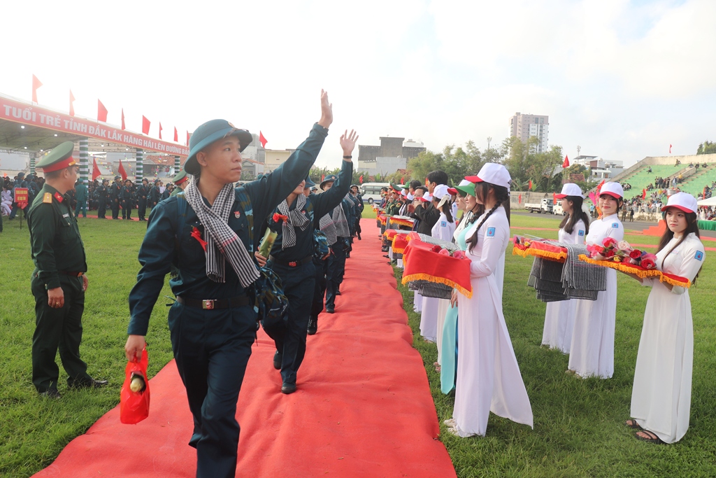 Phó Bí thư Thường trực Tỉnh ủy bày tỏ tin tưởng 553 thanh niên ưu tú của 6 xã, phường sẽ phát huy truyền thống của quê hương, của tuổi trẻ Đắk Lắk, nhanh chóng hòa nhập môi trường quân đội và công an, vượt qua thử thách, không ngừng rèn đức, luyện tài, hoàn thành xuất sắc mọi nhiệm vụ được giao. Đồng chí cũng đề nghị các đơn vị nhận quân quan tâm giáo dục, rèn luyện, tạo điều kiện thuận lợi để chiến sĩ mới trưởng thành toàn diện; đồng thời yêu cầu các cấp ủy, chính quyền, Mặt trận và các đoàn thể tiếp tục thực hiện tốt chính sách hậu phương quân đội, chăm lo đời sống gia đình quân nhân, tạo điều kiện để thanh niên sau khi hoàn thành nghĩa vụ trở về địa phương có việc làm ổn định, tiếp tục đóng góp cho sự phát triển kinh tế - xã hội và giữ vững quốc phòng, an ninh tại cơ sở.