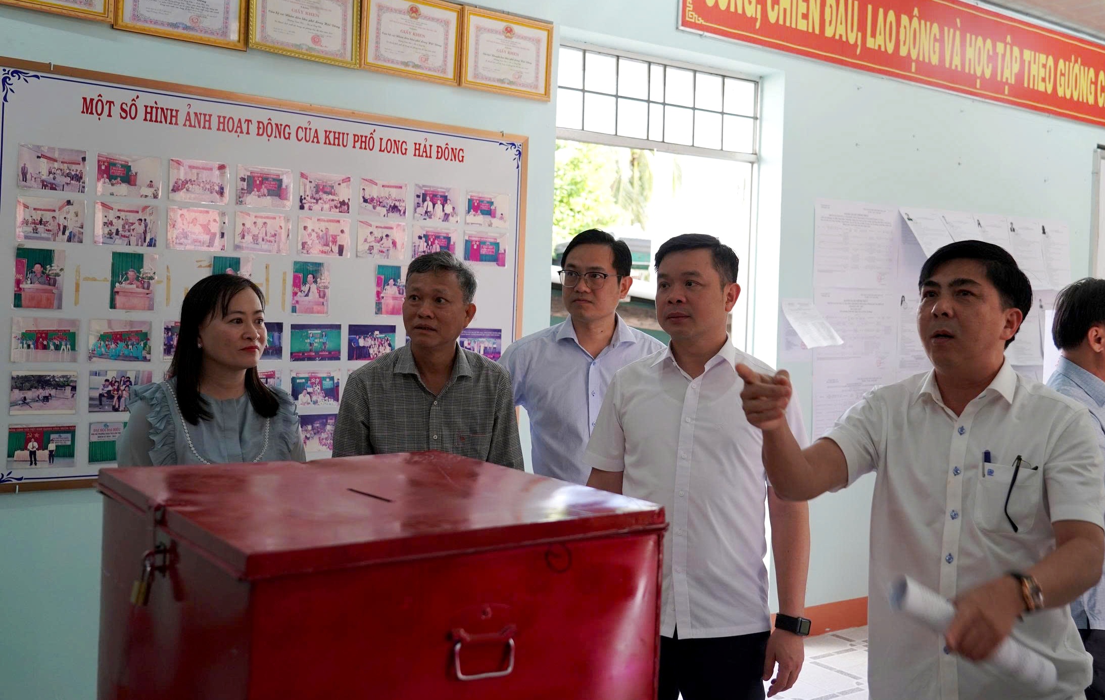 Phó Bí thư Tỉnh ủy Đỗ Hữu Huy kiểm tra khu vực bỏ phiếu trên địa bàn phường Sông Cầu.