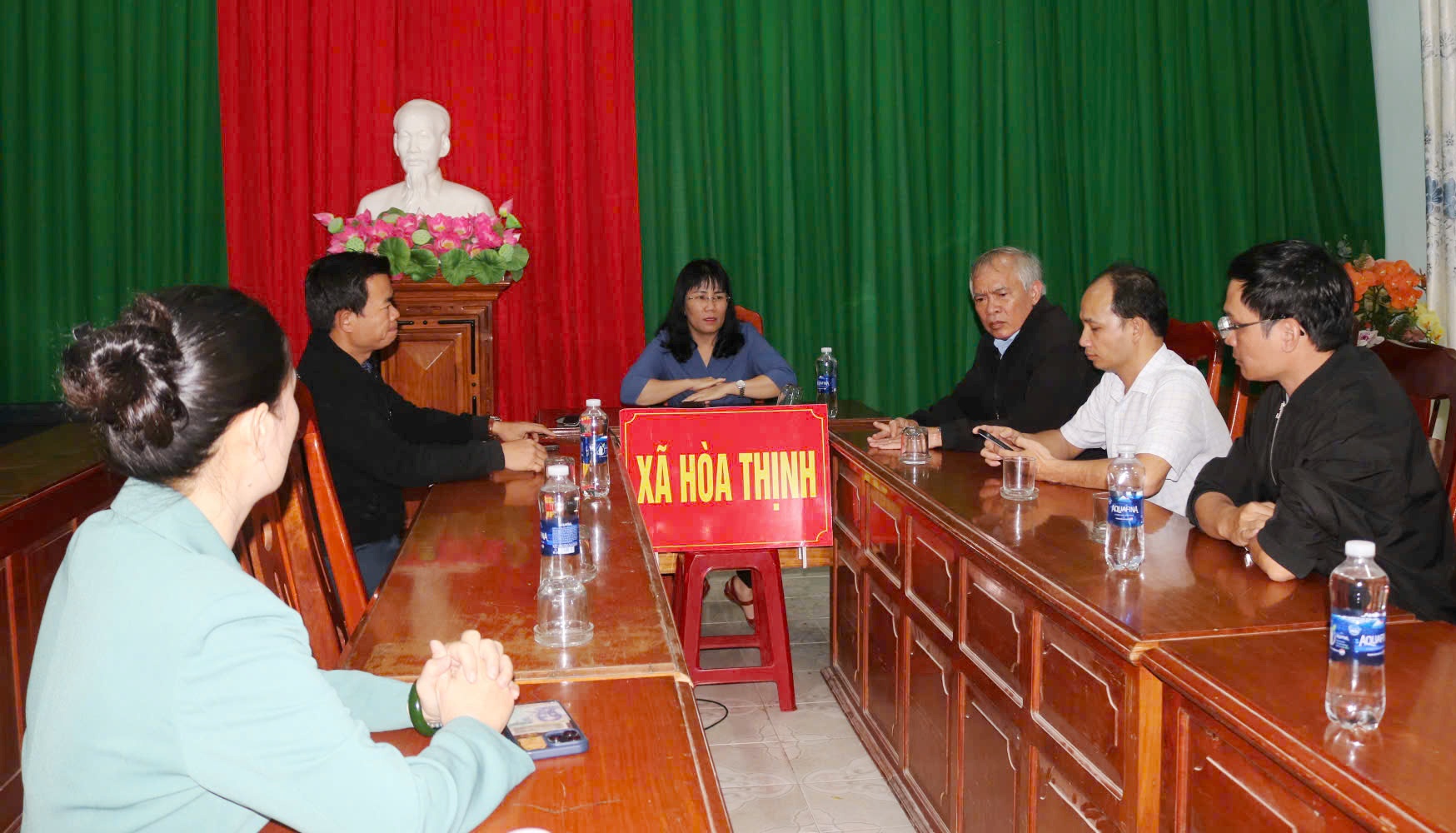 Tại buổi làm việc, đồng chí Hồ Thị Nguyên Thảo yêu cầu xã Hòa Thịnh tập trung nhân lực, phương tiện, vôi bột và hóa chất khử khuẩn để xử lý công tác vệ sinh môi trường, phòng tránh dịch bệnh sau lũ. Đồng chí lưu ý các khu vực chôn lấp gia súc phải được xử lý kỹ, khử khuẩn bằng vôi bột và phun hóa chất sát trùng môi trường. Sở Nông nghiệp và Môi trường hỗ trợ địa phương trong công tác xử lý vệ sinh môi trường sau lũ. Song song với khắc phục hậu quả sau lũ lụt, Phó Chủ tịch Thường trực UBND tỉnh cũng yêu cầu địa phương cần chủ động các phương án ứng phó với bão số 15.