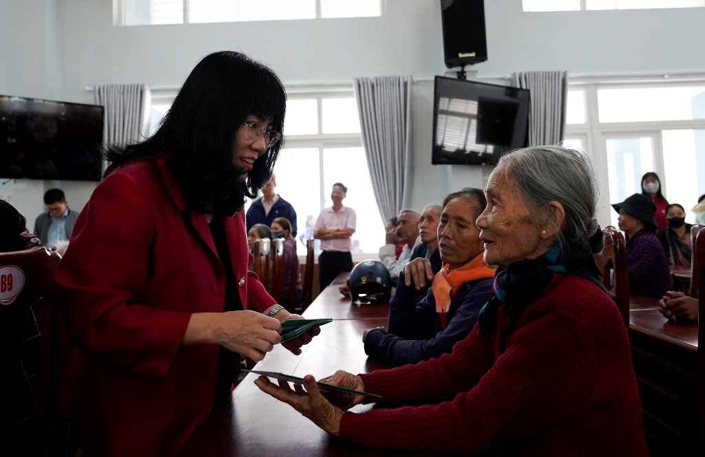 Phó Chủ tịch Thường trực UBND tỉnh Hồ Thị Nguyên Thảo tặng quà Tết cho người dân xã Sông Hinh.