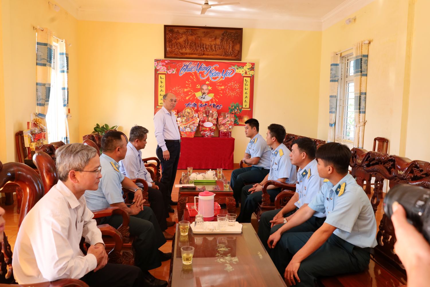 Chúc Tết cán bộ, chiến sĩ Trạm Ra-đa 20, Phó Chủ tịch UBND tỉnh Trương Công Thái ghi nhận biểu dương những đóng góp của đơn vị trong việc đảm bảo an toàn hàng không trong thời gian qua.