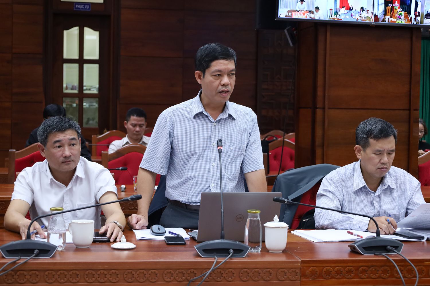 Lãnh đạo Sở Nông nghiệp và Môi trường báo cáo tại cuộc họp