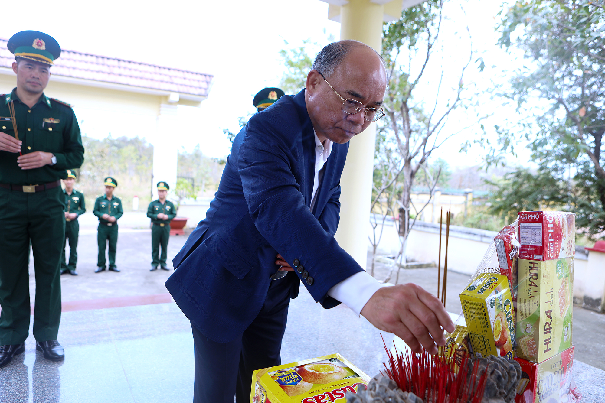 Đoàn công tác viếng Nhà bia ghi danh các anh hùng liệt sĩ tại Đồn Biên phòng Cửa khẩu Đắk Ruê.