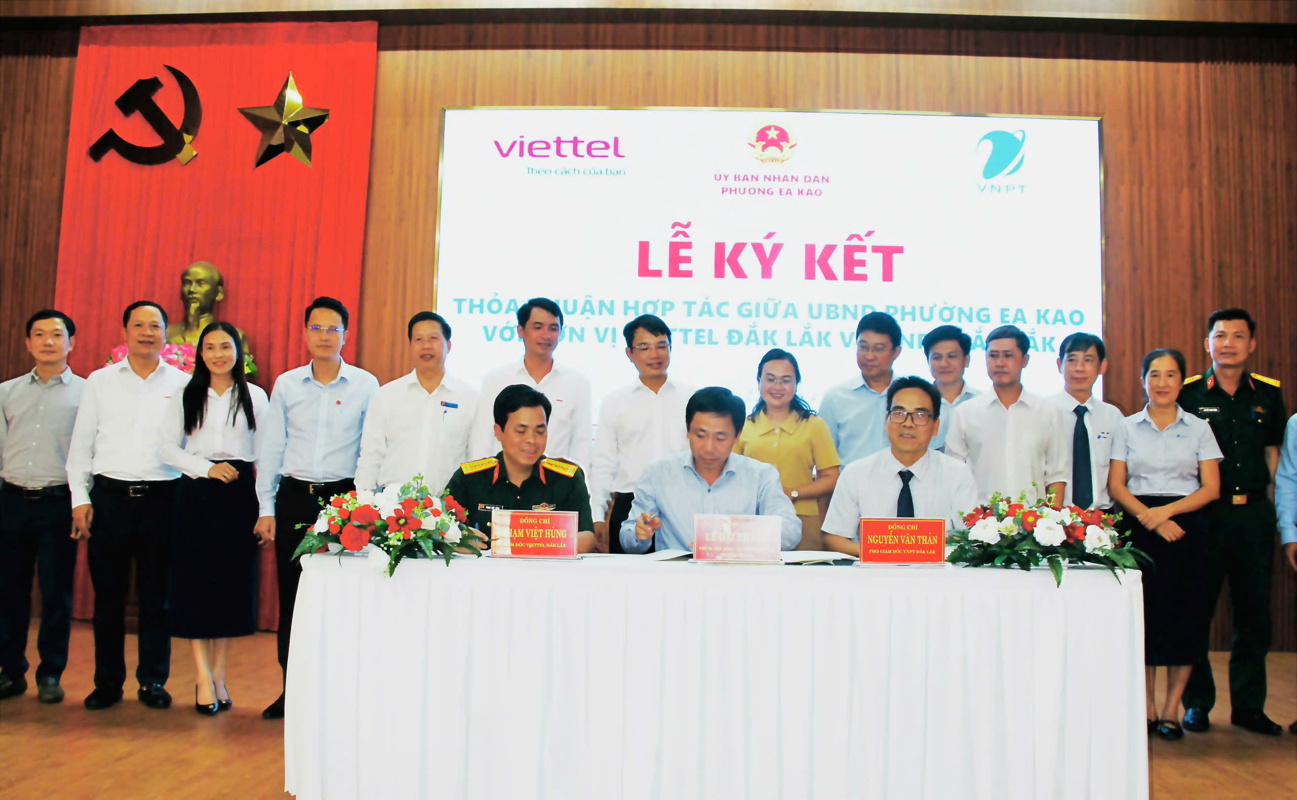 Tham dự lễ ký kết có ông Lê Đại Thắng, Chủ tịch UBND phường Ea Kao và ông Nguyễn Văn Thản, Phó Giám đốc VNPT Đắk Lắk.