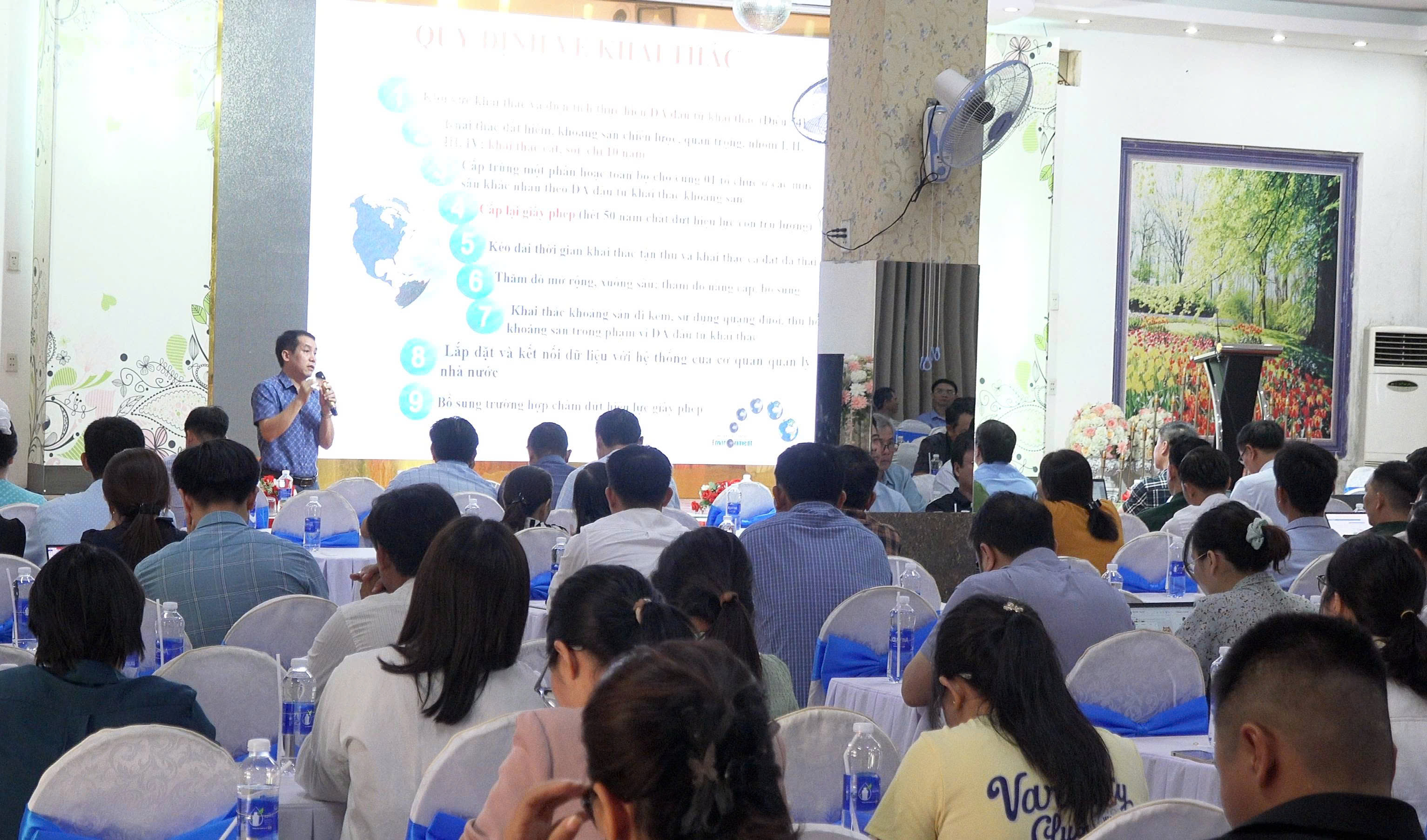 Đồng chí Phạm Việt Huy, báo cáo viên của Cục Địa chất và Khoáng sản Việt Nam trình bày các nội dung cốt lõi của Luật Địa chất và Khoáng sản.