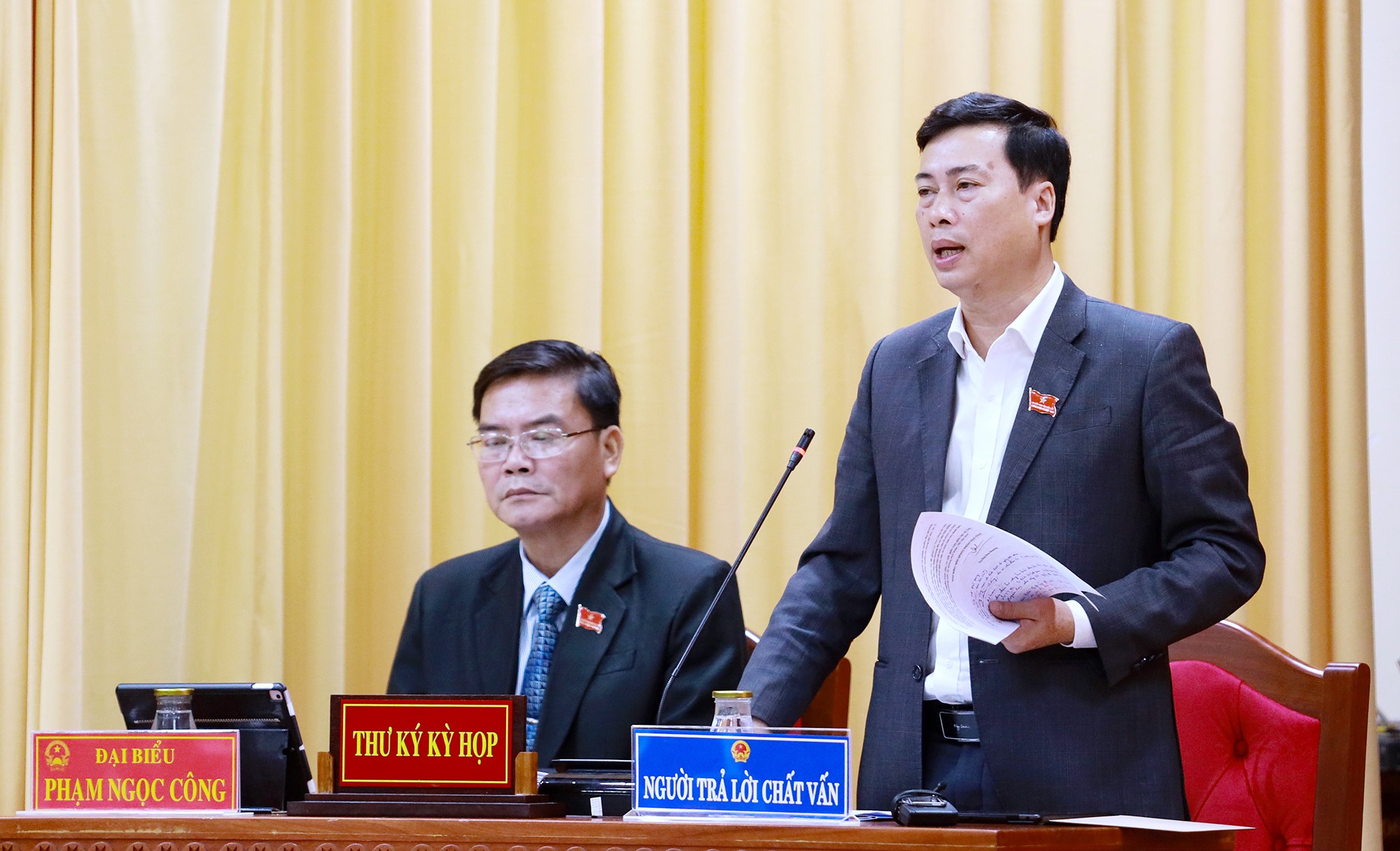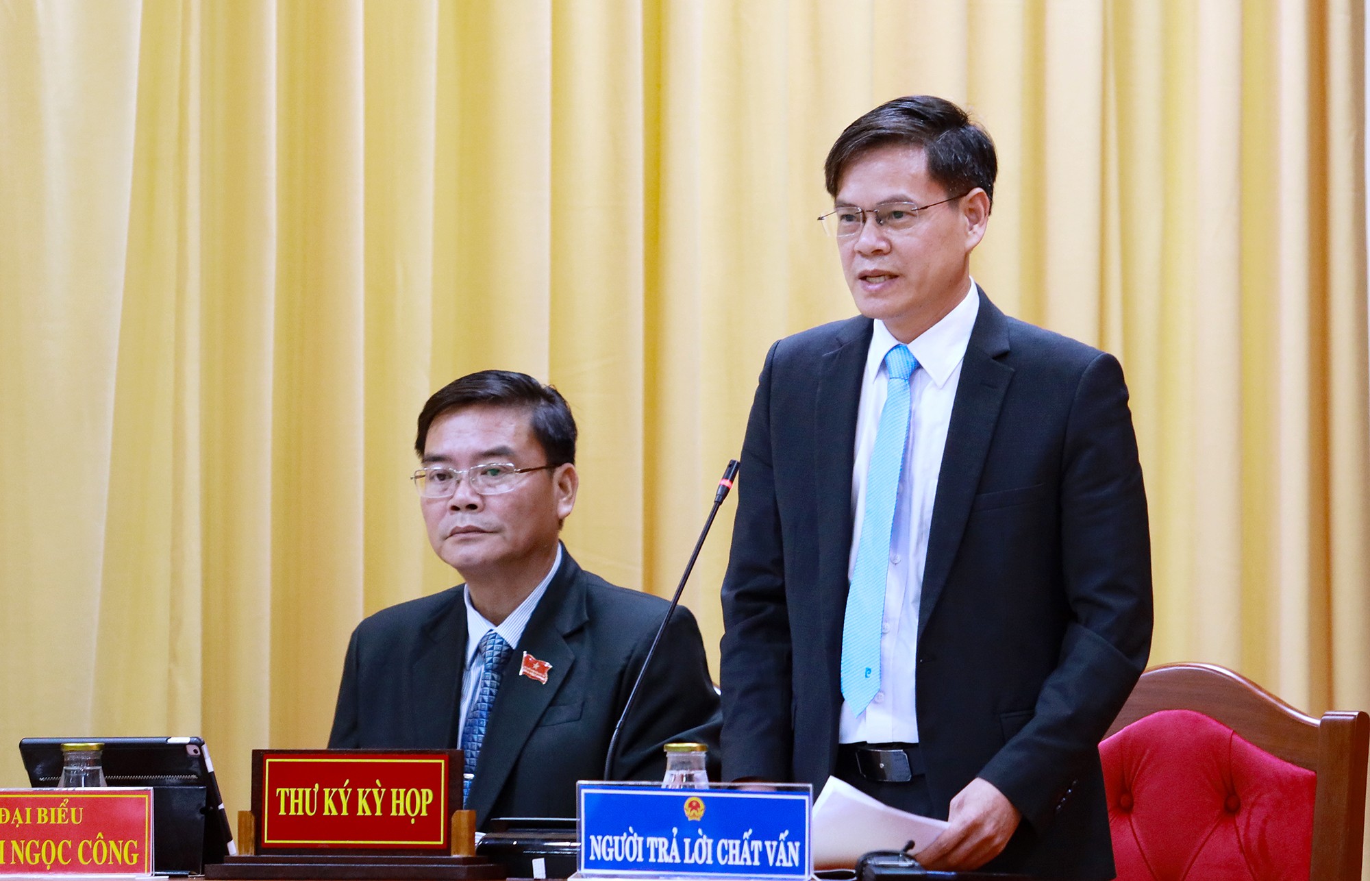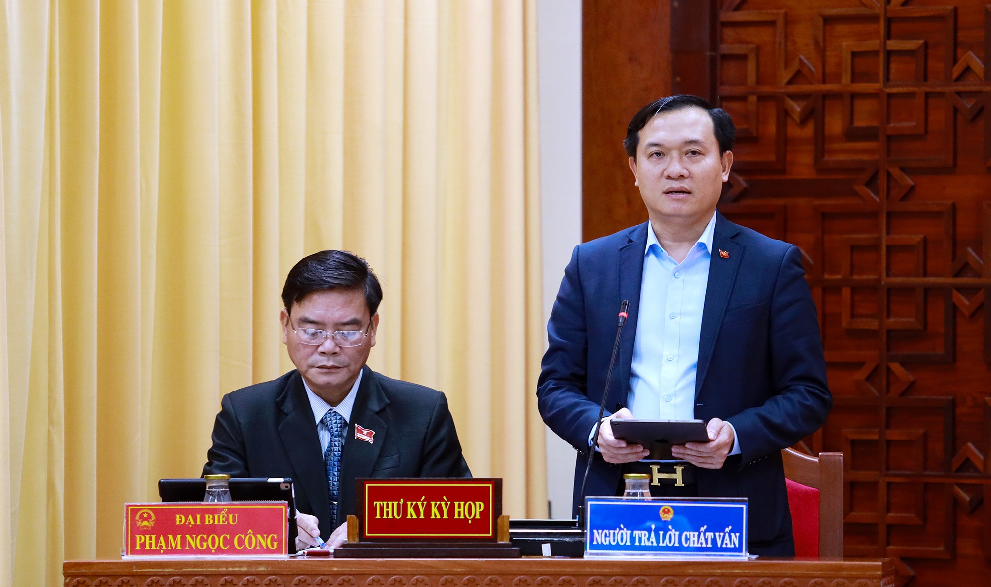 Giám đốc Sở Nội vụ Trương Ngọc Tuấn trả lời nội dung chất vấn.