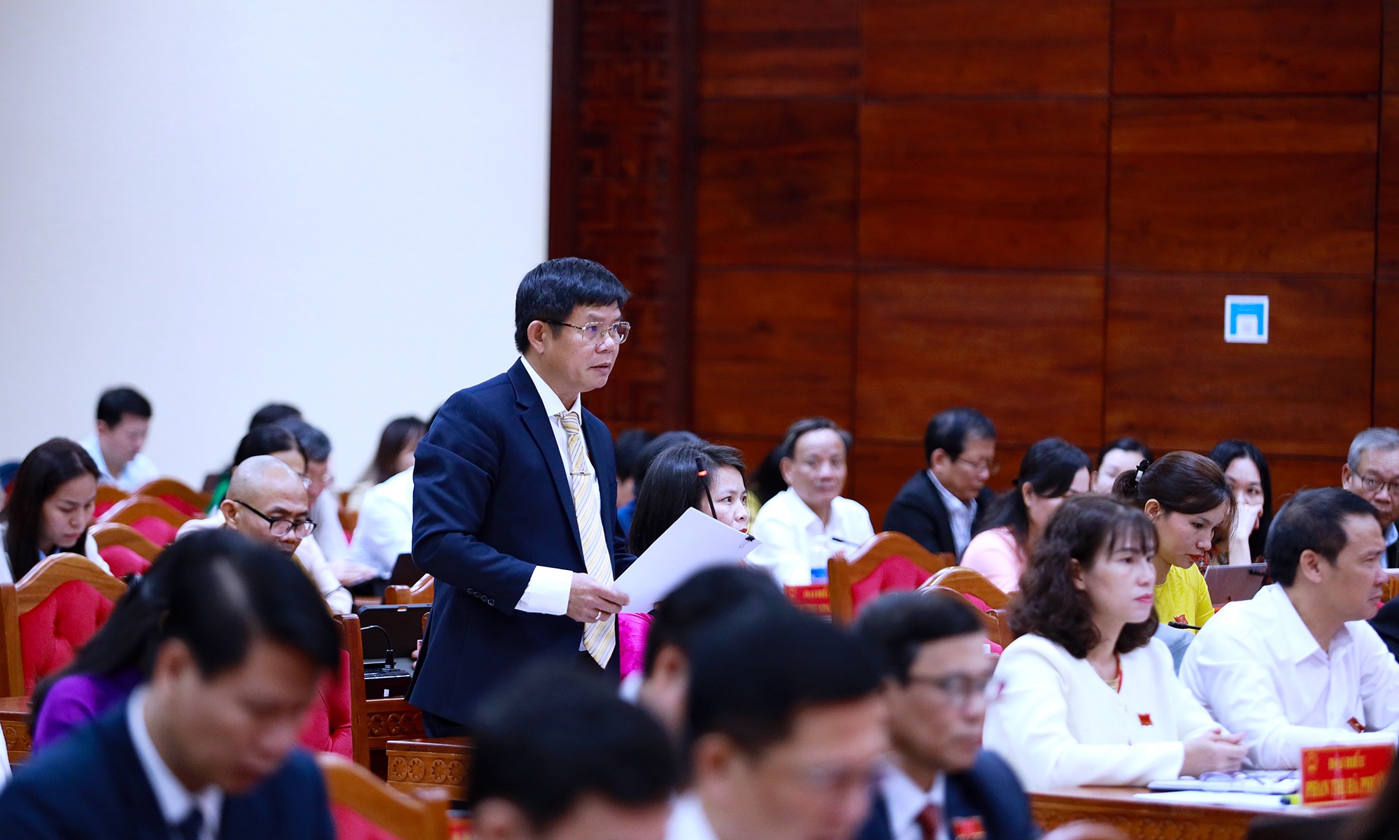 Đại biểu Lê Văn Cường – Trưởng Ban Văn hóa – Xã hội HĐND tỉnh nêu câu hỏi chất vấn.
