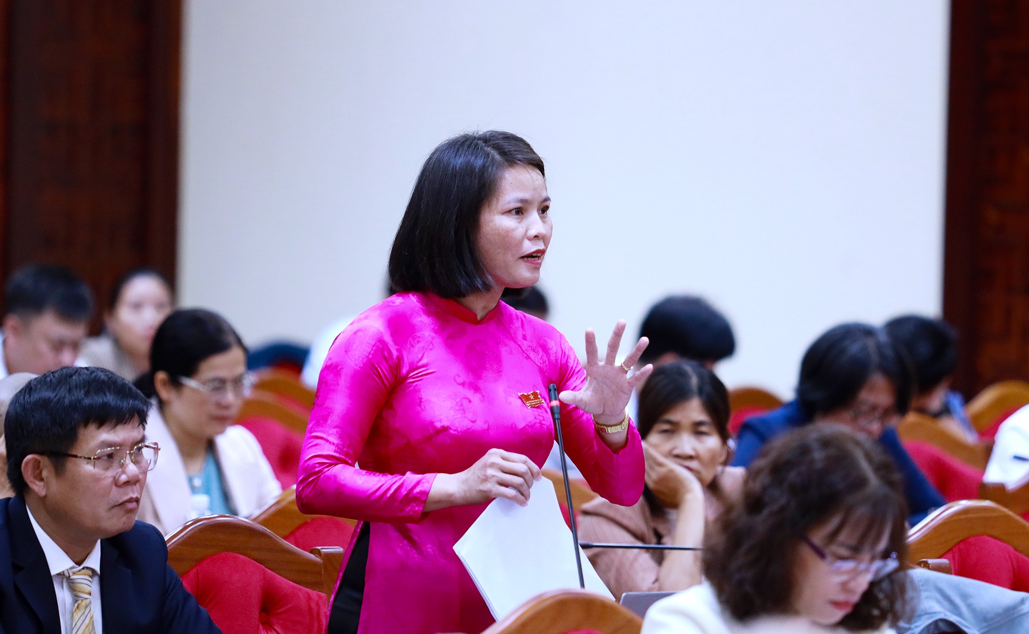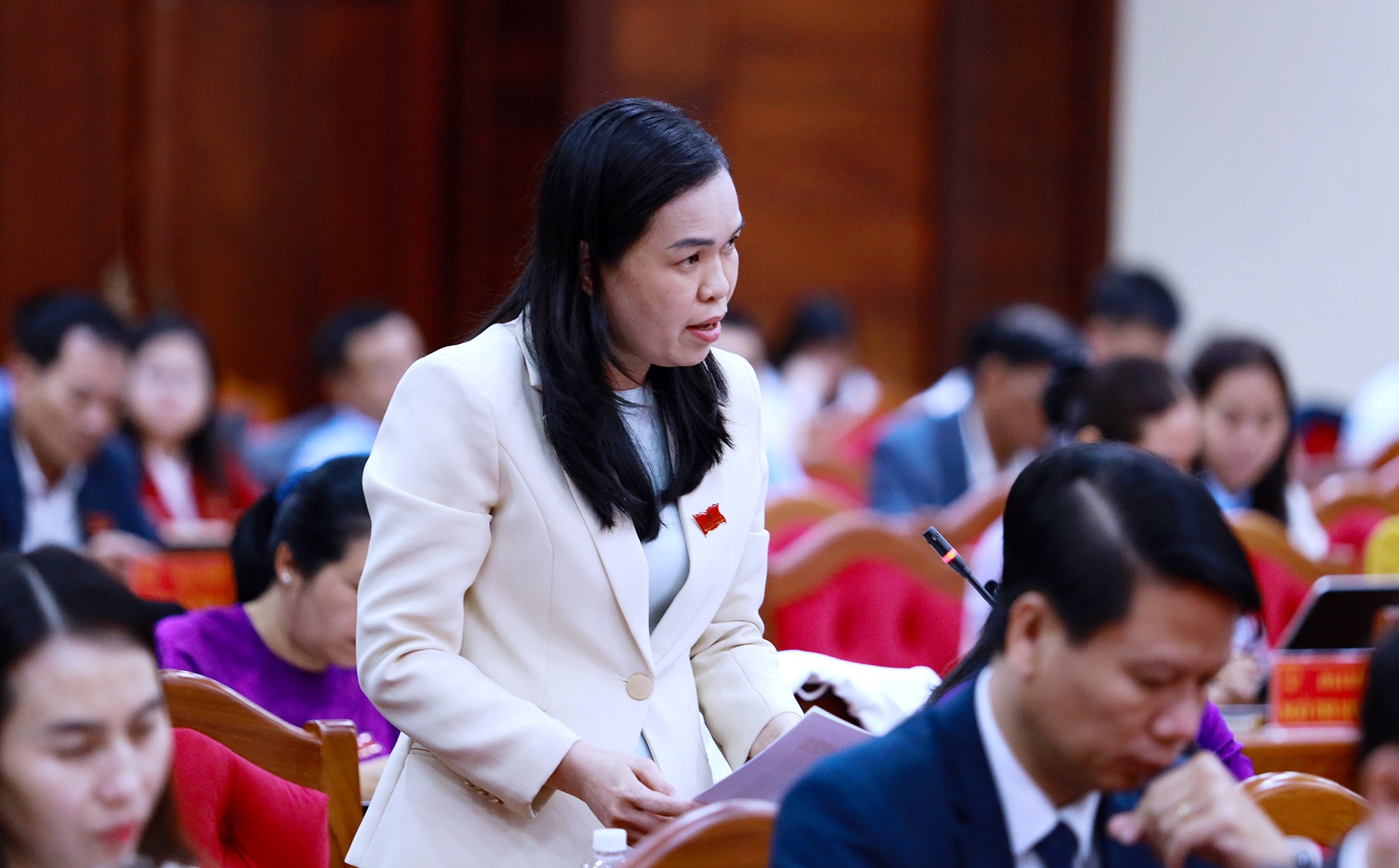 Đại biểu Nguyễn Thị Vân Anh – Phó Trưởng Ban phế HĐND tỉnh nêu câu hỏi chất vấn.