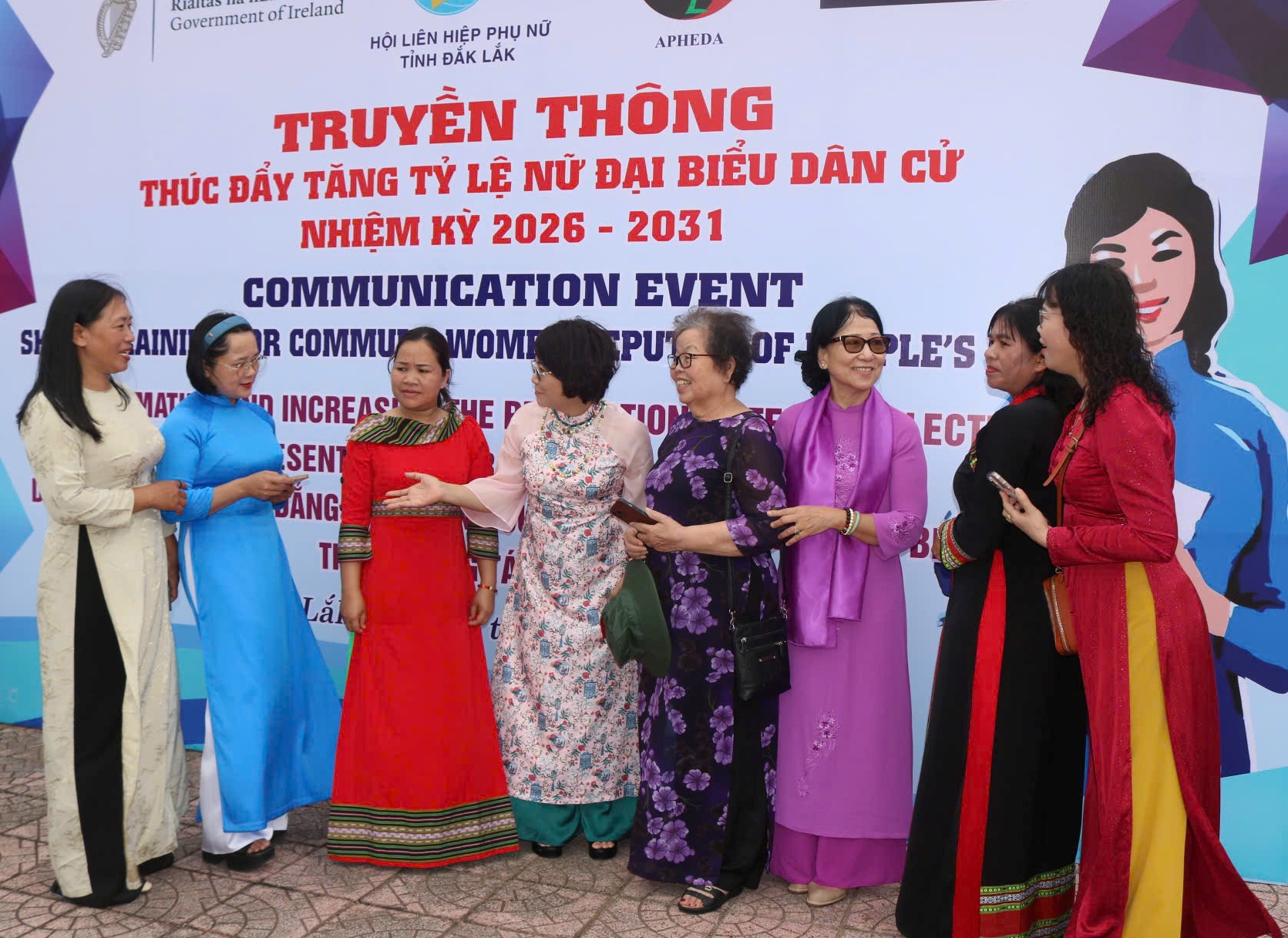 Hoạt động truyền thông trực quan về thúc đẩy sự tham gia của phụ nữ trong các cơ quan dân cử tại hội nghị.