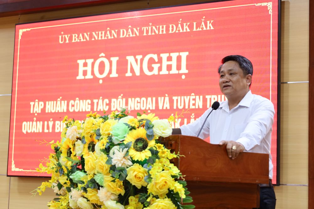 Phát biểu khai mạc, đồng chí Trương Công Thái – Phó Chủ tịch UBND tỉnh nhấn mạnh: Tỉnh Đắk Lắk vừa tiếp giáp đường biên giới dài với tỉnh Mondulkiri của Vương quốc Campuchia, vừa sở hữu bờ biển rộng mở trên dải đất duyên hải Nam Trung Bộ. Đây là điều kiện thuận lợi để thúc đẩy phát triển kinh tế biển, mở rộng quan hệ đối ngoại và tăng cường quốc phòng - an ninh. Tuy nhiên, đi cùng với tiềm năng là trách nhiệm lớn hơn trong công tác quản lý, bảo vệ biên giới, biển đảo và tuyên truyền sâu rộng nhằm tạo sự đồng thuận xã hội, giữ vững chủ quyền lãnh thổ quốc gia.