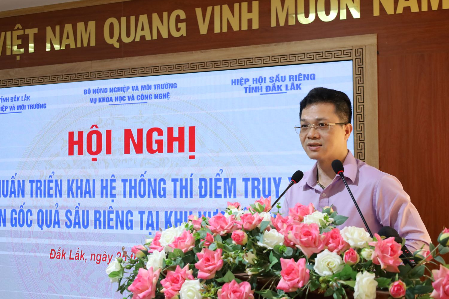 Phát biểu tại hội nghị, ông Nguyễn Văn Long, Vụ trưởng Vụ Khoa học Công nghệ (Bộ Nông nghiệp và Môi trường) cho biết, ngành hàng sầu riêng đang phát triển mạnh, đặc biệt tại khu vực Tây Nguyên. Tuy nhiên, thời gian qua, quá trình sản xuất, tiêu thụm xuất khẩu sầu riêng vẫn đang đối diện với nhiều những khó khăn, vướng mắc. Do đó, việc xây dựng và triển khai hệ thống truy xuất nguồn gốc là yêu cầu cấp thiết. Đây là công cụ quan trọng không chỉ cho khối cơ quan quản lý nhà nước, mà còn là hệ thống cần thiết, hữu ích cho doanh nghiệp và người dân phục vụ cho việc xuất khẩu sầu riêng.