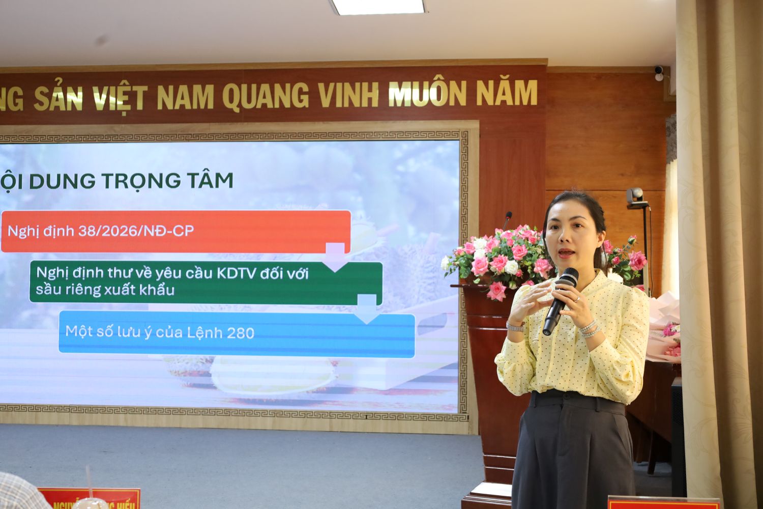 Tại hội nghị, các đại biểu đã được phổ biến chương trình thí điểm truy xuất nguồn gốc; cập nhật quy định xuất khẩu sầu riêng sang thị trường Trung Quốc. Đồng thời, trao đổi về các giải pháp công nghệ, quản lý vùng nguyên liệu và tổ chức sản xuất theo chuỗi. Nhiều ý kiến từ doanh nghiệp, hợp tác xã tập trung vào những khó khăn trong quá trình triển khai, nhất là vấn đề liên thông dữ liệu và đáp ứng yêu cầu của thị trường nhập khẩu.