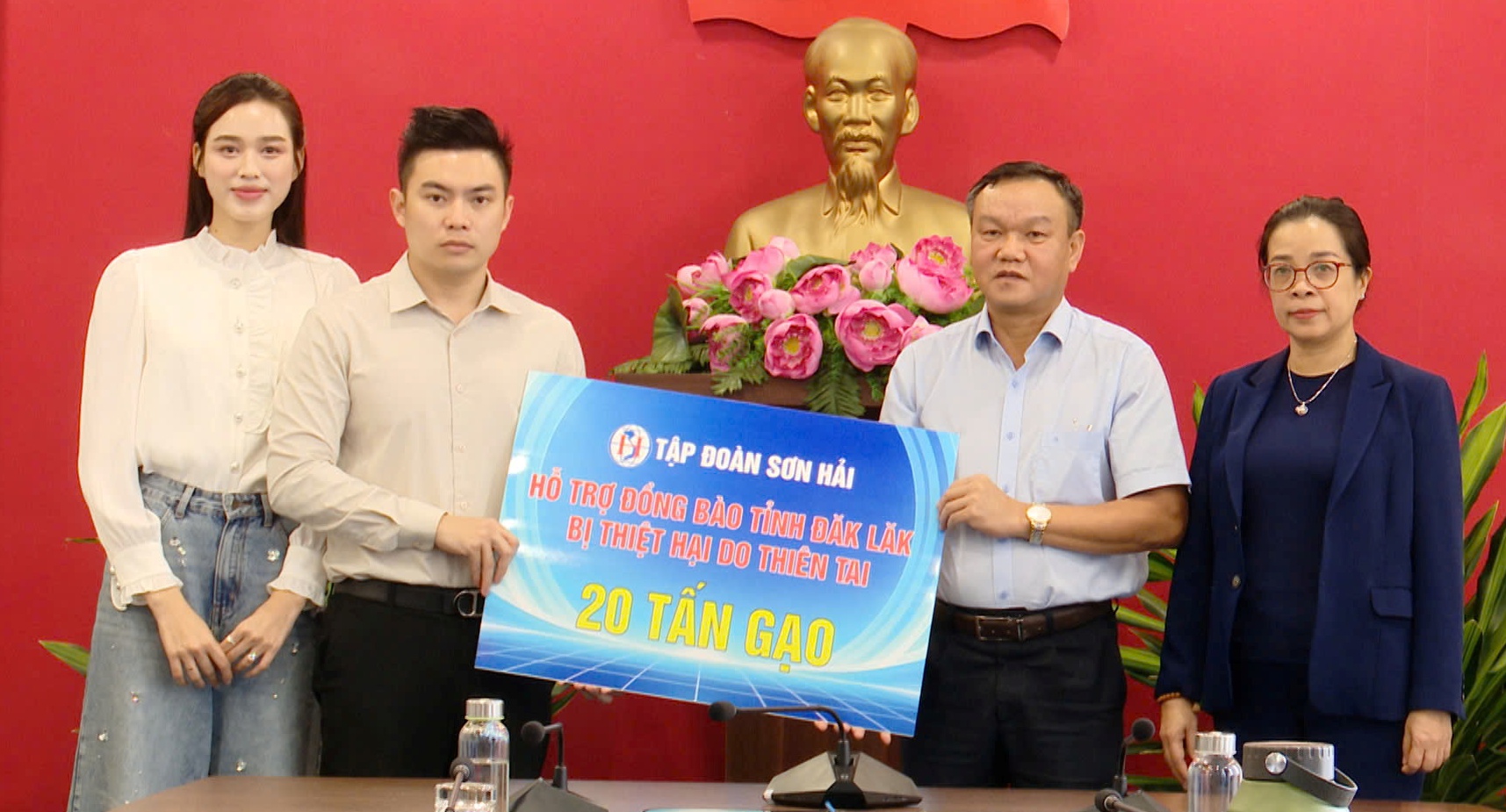 Ngày 2/12, tại trụ sở Tỉnh ủy cơ sở 2 (phường Bình Kiến), các đồng chí: Huỳnh Thị Chiến Hòa, Phó Bí thư Tỉnh ủy; Đào Mỹ, Phó Chủ tịch UBND tỉnh tiếp đoàn công tác của Tập đoàn Sơn Hải do Tổng Giám đốc Nguyễn Viết Vương làm trưởng đoàn đã đến trao 2 tỷ đồng và 20 tấn gạo hỗ trợ người dân tỉnh Đắk Lắk khắc phục hậu quả thiên tai.