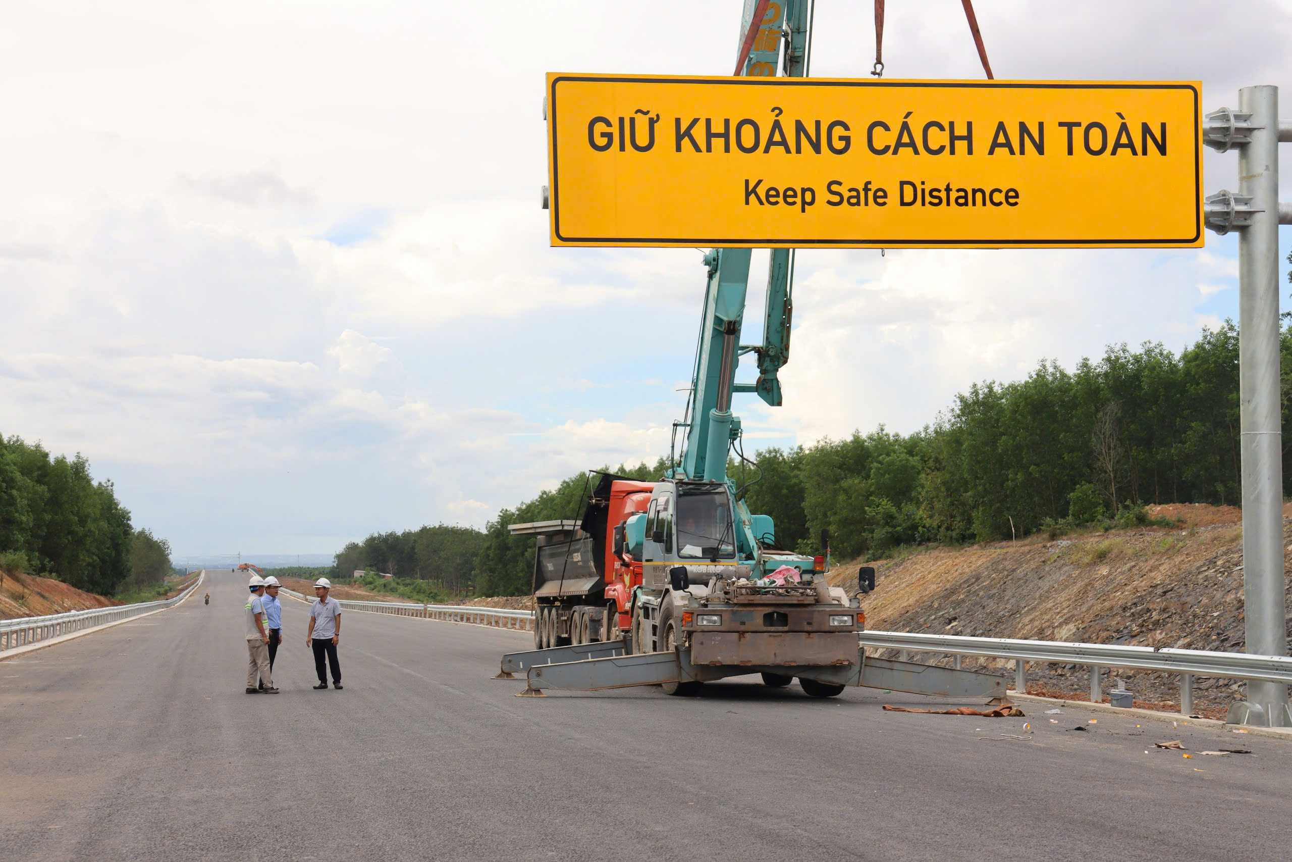 Lắp đặt biển báo tại Dự án thành phần 3 cao tốc Khánh Hòa - Buôn Ma Thuột.