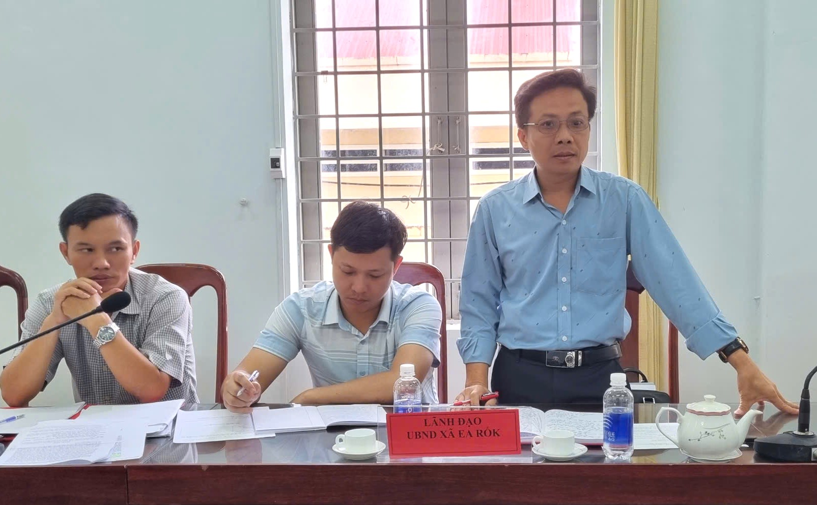 Đại diện lãnh đạo UBND xã Ea Rốk báo cáo, thông tin về tình hình giải quyết đơn thư của công dân.