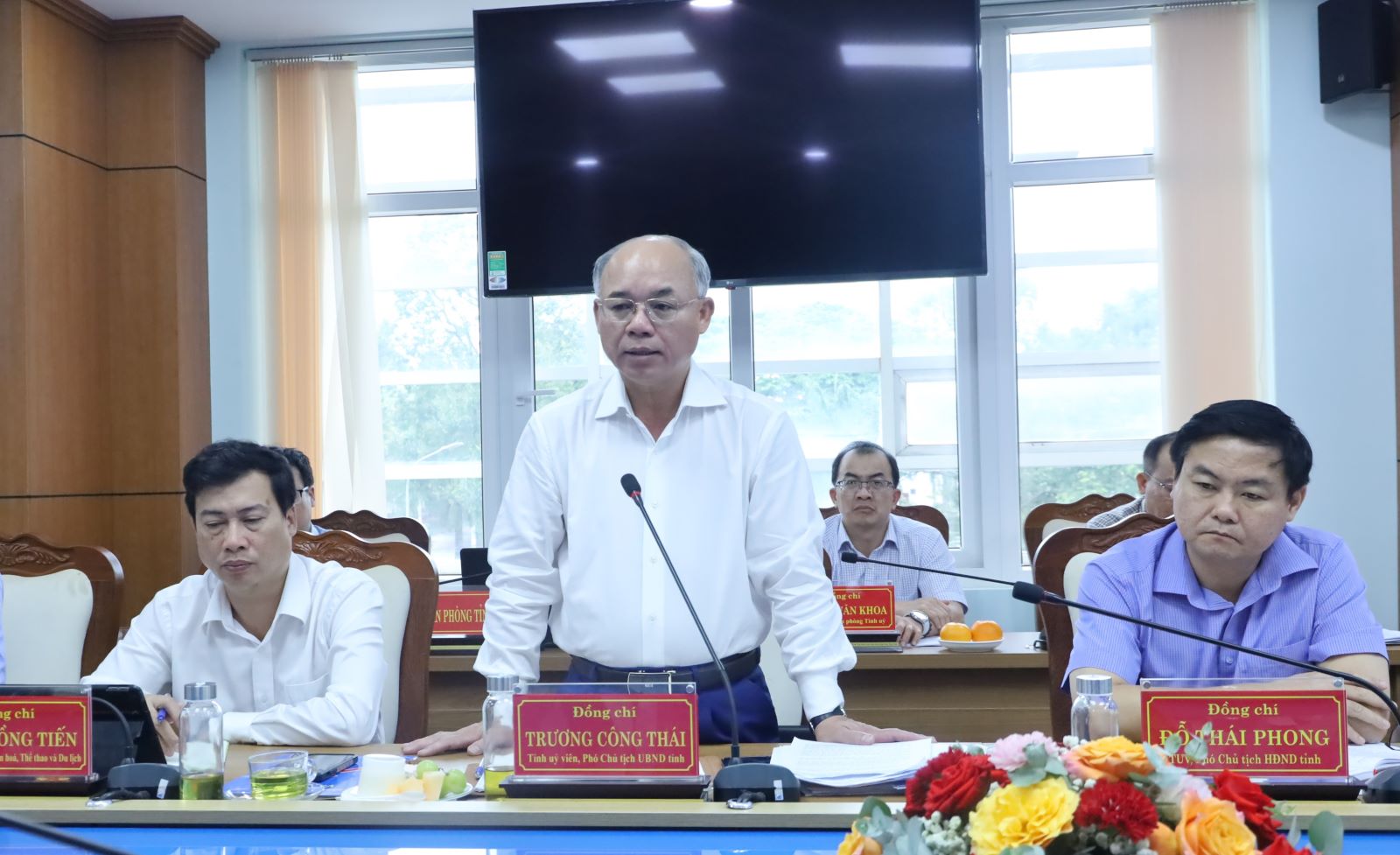 Phó Chủ tịch UBND tỉnh Trương Công Thái phát biểu tại buổi làm việc.