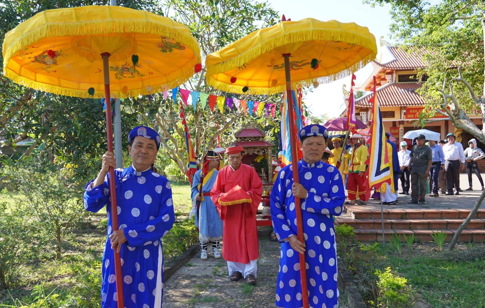 Đoàn rước sắc di chuyển về Đền thờ Lương Văn Chánh theo nghi thức truyền thống.