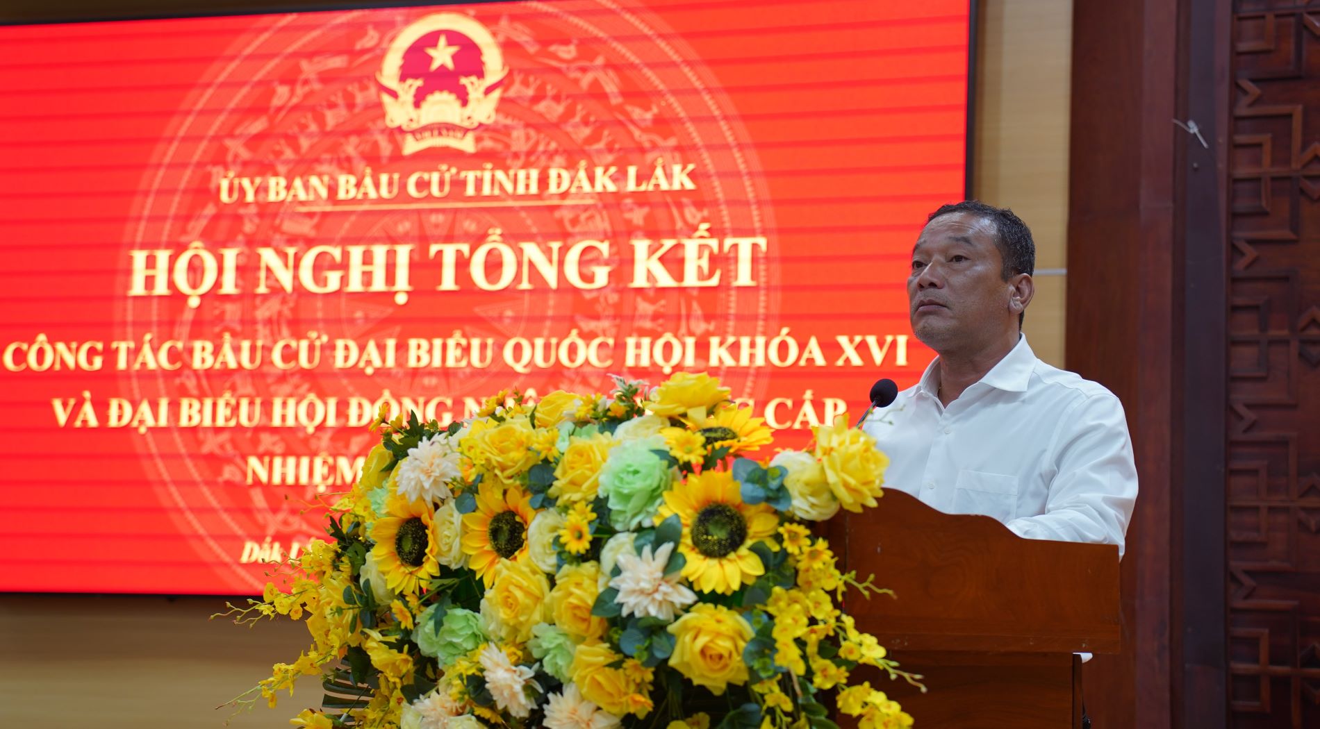 Phát biểu khai mạc hội nghị, đồng chí Cao Thị Hòa An - Ủy viên Ban Chấp hành Trung ương Đảng, Phó Bí thư Thường trực Tỉnh ủy, Chủ tịch HĐND tỉnh, Phó Trưởng Ban Chỉ đạo công tác bầu cử tỉnh, Chủ tịch Ủy ban bầu cử tỉnh khẳng định, Cuộc bầu cử đại biểu Quốc hội khóa XVI và đại biểu HĐND các cấp nhiệm kỳ 2026-2031 là sự kiện chính trị trọng đại, là đợt sinh hoạt dân chủ sâu rộng trong mọi tầng lớp Nhân dân. Tại Đắk Lắk, cuộc bầu cử diễn ra trong bối cảnh tỉnh ta đang tập trung thực hiện các mục tiêu phát triển kinh tế - xã hội theo Nghị quyết Đại hội Đảng bộ tỉnh. Dưới sự lãnh đạo sát sao của Tỉnh ủy, sự giám sát của HĐND và sự điều hành quyết liệt của UBND tỉnh, tỉnh đã tổ chức cuộc bầu cử đảm bảo dân chủ, bình đẳng, đúng pháp luật, an toàn và tiết kiệm. Đây là kết quả của sự đoàn kết, đồng lòng của cả hệ thống chính trị; là sự tận tụy, không quản ngày đêm của hàng nghìn thành viên trong các tổ chức phụ trách bầu cử từ tỉnh đến các thôn, buôn, tổ dân phố.