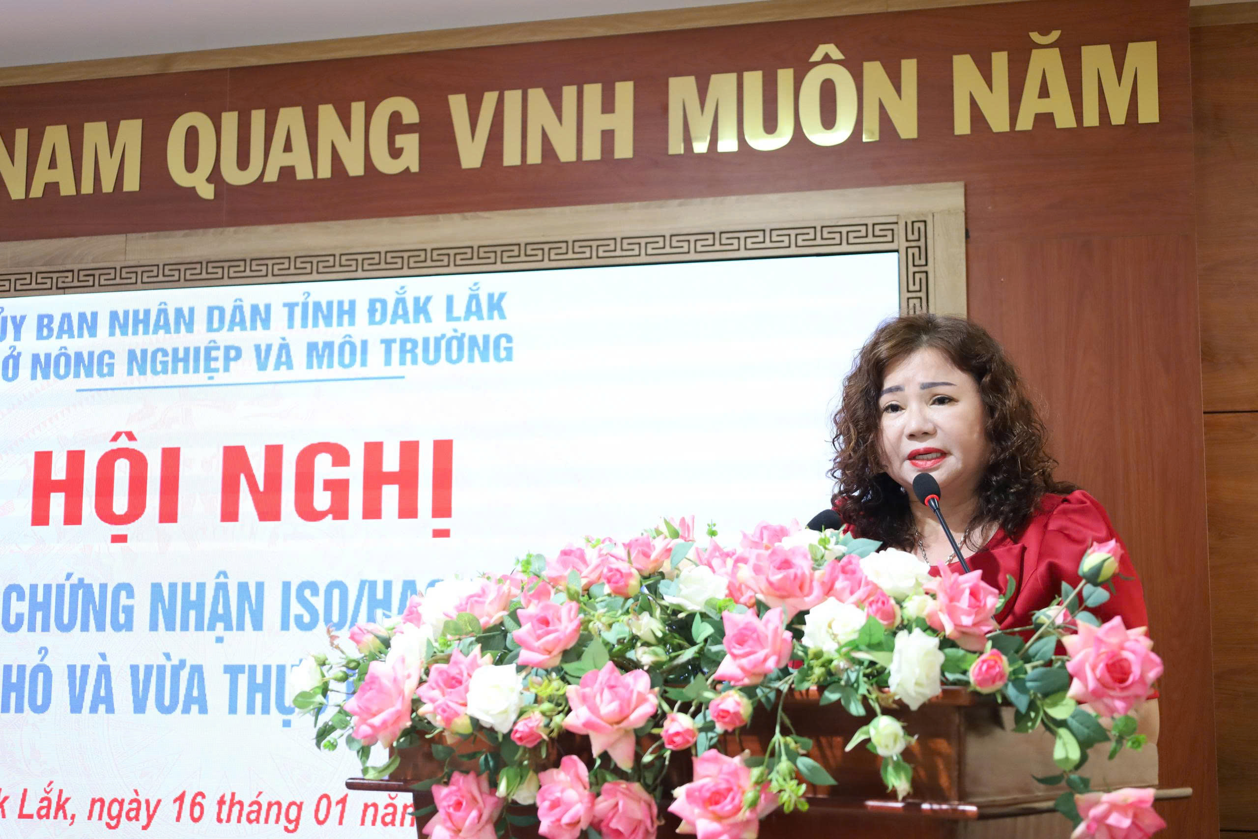 Bà Đặng Thị Thủy - Phó Giám đốc Sở NN&MT trao giấy chứng nhận ISO/HACCP cho 8 doanh nghiệp tỉnh Đắk Lắk