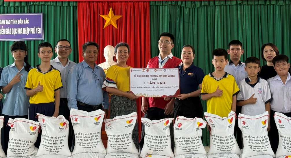 Chiều 25/2, Tổ chức Save the Children International (Văn phòng đại diện tại Việt Nam) phối hợp với Liên hiệp các Tổ chức Hữu nghị tỉnh và Tập đoàn SunRice Group tổ chức chương trình thăm, trao viện trợ 1 tấn gạo cho trẻ em khuyết tật đang học tập và sinh hoạt tại Trung tâm Hỗ trợ phát triển giáo dục hòa nhập Phú Yên.