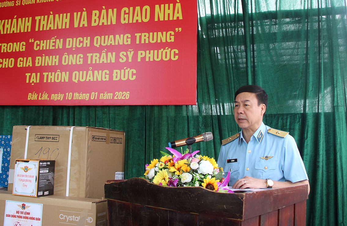 Thiếu tướng Lê Văn Uy nhấn mạnh: Trong quá trình triển khai Chiến dịch Quang Trung, cán bộ, chiến sĩ Trường Sĩ quan Không quân luôn xác định rõ tinh thần ‘ở đâu Nhân dân gặp khó khăn, ở đó có bộ đội’. Mỗi căn nhà được bàn giao hôm nay không chỉ là một công trình xây dựng, mà còn là biểu tượng của niềm tin, của sự sẻ chia và trách nhiệm của Quân đội đối với Nhân dân. Chúng tôi mong rằng các gia đình sẽ sớm ổn định cuộc sống, yên tâm lao động, sản xuất, góp phần xây dựng quê hương ngày càng phát triển.