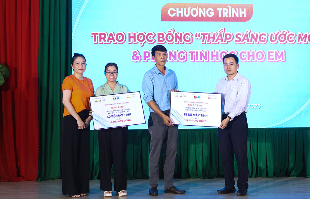 Cũng nhân dịp này, nhằm đồng hành của các học sinh trong việc học tập môn tin học, góp phần vào công cuộc chuyển đổi số toàn diện, Tỉnh đoàn Đắk Lắk, Công ty Cổ phần Xây dựng Bông Sen Vàng phối hợp cùng Dự án Nuôi em trao tặng 02 phòng tin học, một phòng gồm 10 bộ máy tính với trị giá 73.900.000 đồng và một phòng gồm 15 bộ máy tính trị giá 110.850.000 đồng.