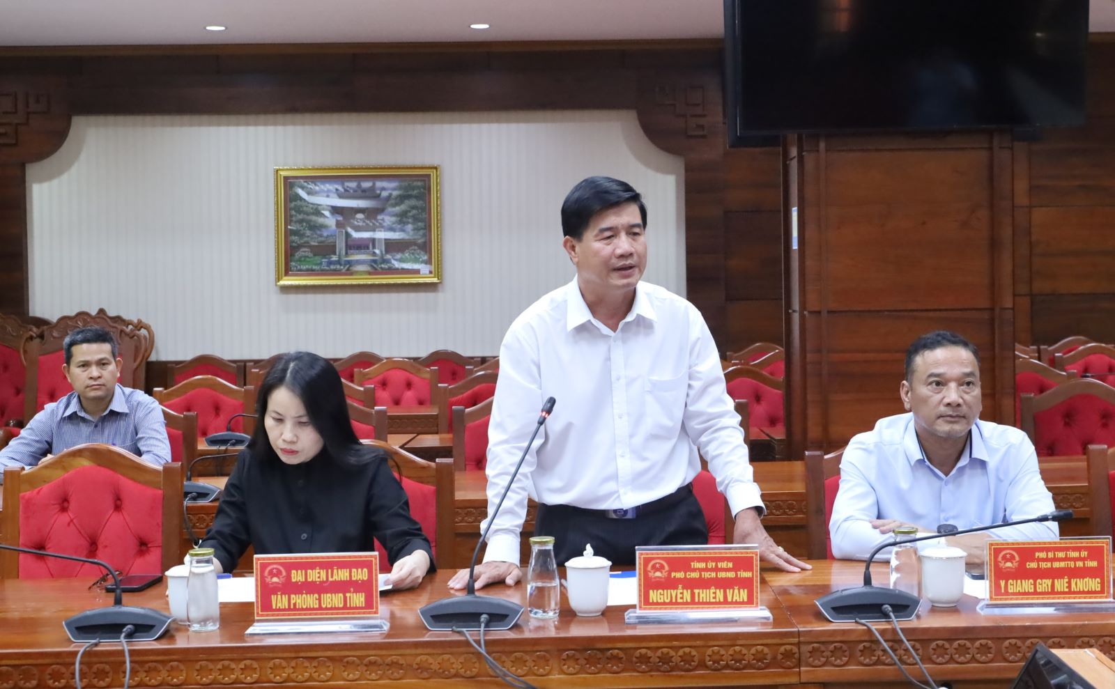 Phó Chủ tịch UBND tỉnh Nguyễn Thiên Văn phát biểu tại buổi làm việc.
