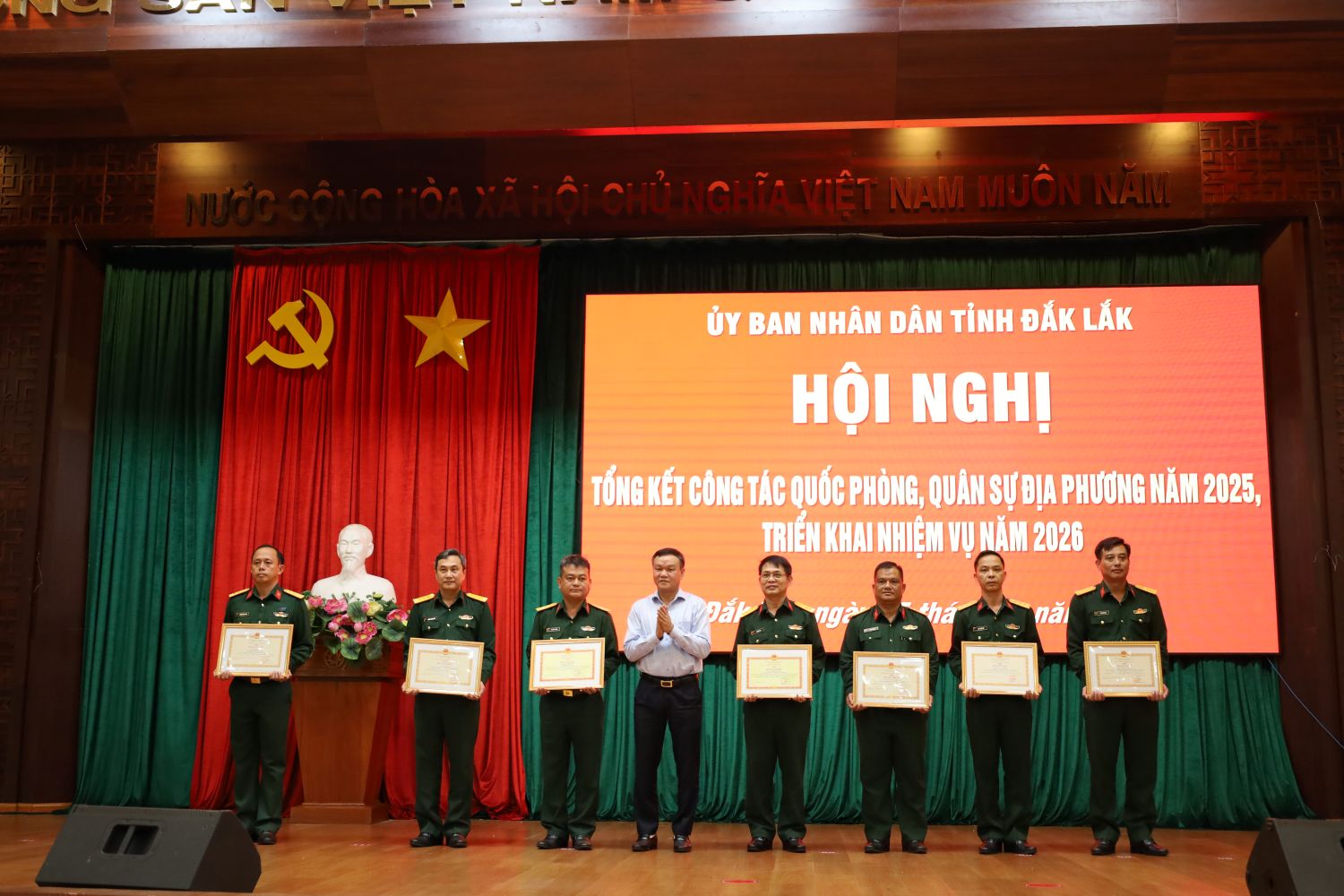 Tại Hội nghị, thừa ủy quyền của Bộ Quốc Phòng, Bộ Tư lệnh Quân khu 5, UBND tỉnh và Bộ CHQS tỉnh đã tặng Bằng khen và các danh hiệu thi đua cho 24 tập thể và 50 cá nhân vì đã có thành tích xuất sắc đóng góp cho công tác quốc phòng, quân sự địa phương năm 2025.